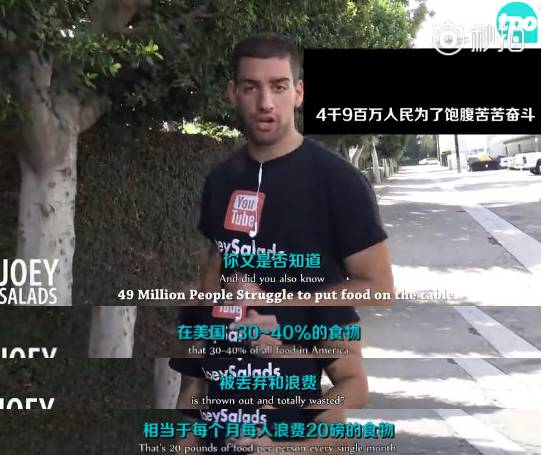 为了更直观地体会,小君给大家看看Youtube上一名up主在美国路边垃圾桶大搜查,看看食物浪费的严重性。