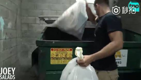 小哥接下来跑到街边随意一家麦当劳的垃圾桶,将里面的垃圾带回家中,来看看究竟就一个垃圾桶里有多少被丢弃和浪费的食物。