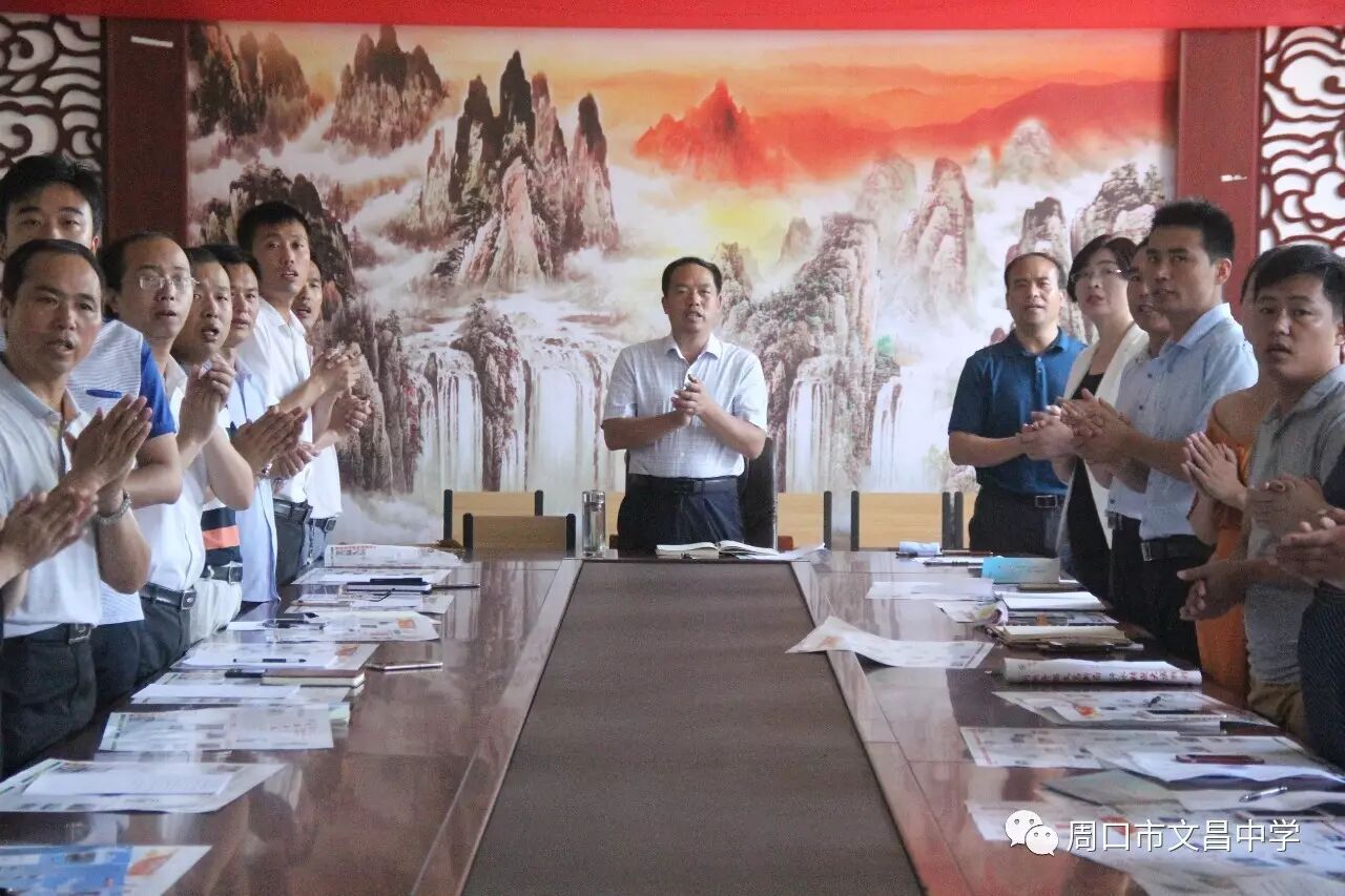 朱贵华带头为九年级主任岳伟、为全体九年级教师、为全体文昌人分别鼓掌。