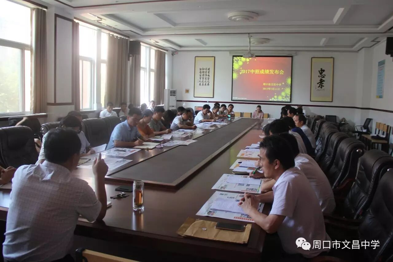 7月11日上午,我校召开2017年中招成绩发布会,校长朱贵华,副校长康瑞玲、徐其运,马静、叶九辉、朱艳丽、朱春雷、朱培春、赵志伟及各级部负责人、九年级全体班主任参加了会议。