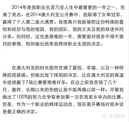 李娜退役告别信截图