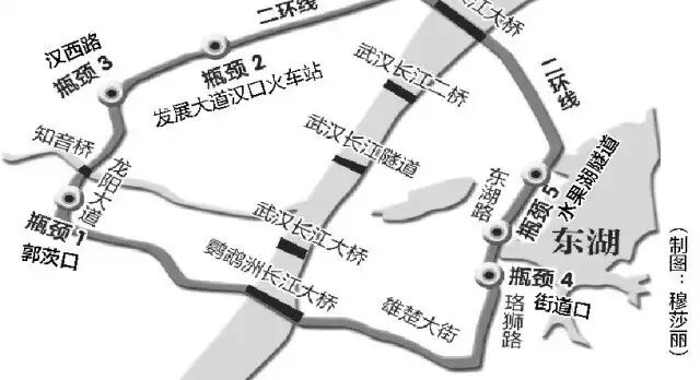 瓶颈1:汉阳郭茨口、芳草路等地或现交通拥堵情况。