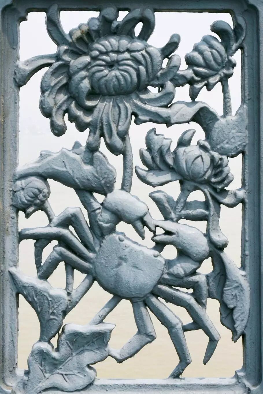 “菊花螃蟹”,寓意菊香蟹肥,丰收喜庆之意。