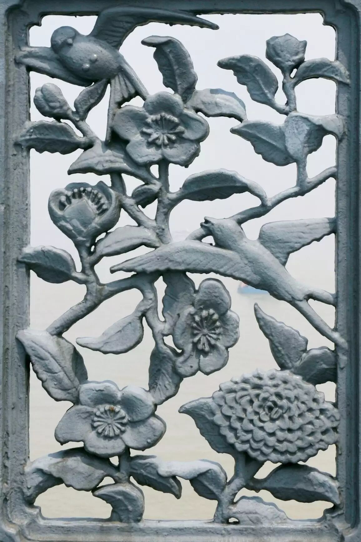武汉长江大桥设计建造之时,就面向全社会征集护栏图案。为征集到好作品,评委会为每幅入选作品设立了50元奖金,相当于当时一名普通工人一个多月的工资。经层层筛选,最终确定了50幅上桥图案,这些图案以花、鸟、鱼、虫为素材,用镂空剪纸手法塑造,再借助西方铸铁雕花工艺制作而成。单侧1670米的大桥护栏,被分成142个单元,每个单元一个图案,一种图案出现2到3次。