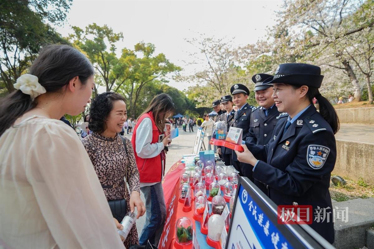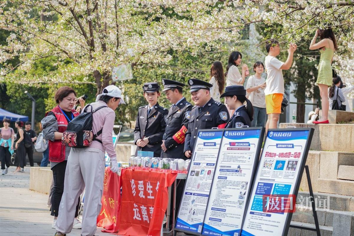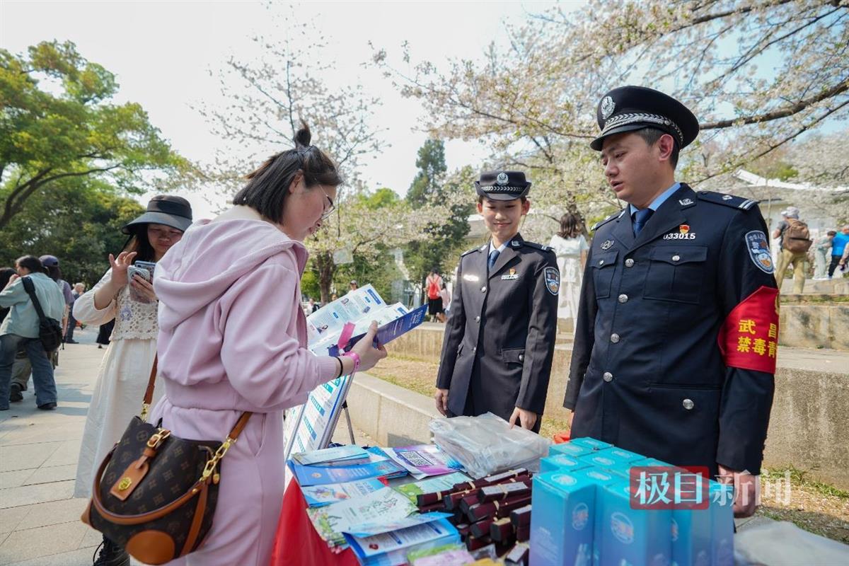 春风拂面,珞樱缤纷。正值武汉大学樱花盛放之际,3月26日下午,在武昌区禁毒委的支持下,武昌区公安分局团委联合禁毒大队、珞珈山派出所及珞珈山街道抓住这一契机,将禁毒反诈宣传课堂“搬”至樱花树下。来自分局禁毒大队、打击网络犯罪中心、珞珈山派出所、东亭派出所、水果湖派出所的青年民警们现场担任“平安讲师”,吸引了众多师生和游客驻足。