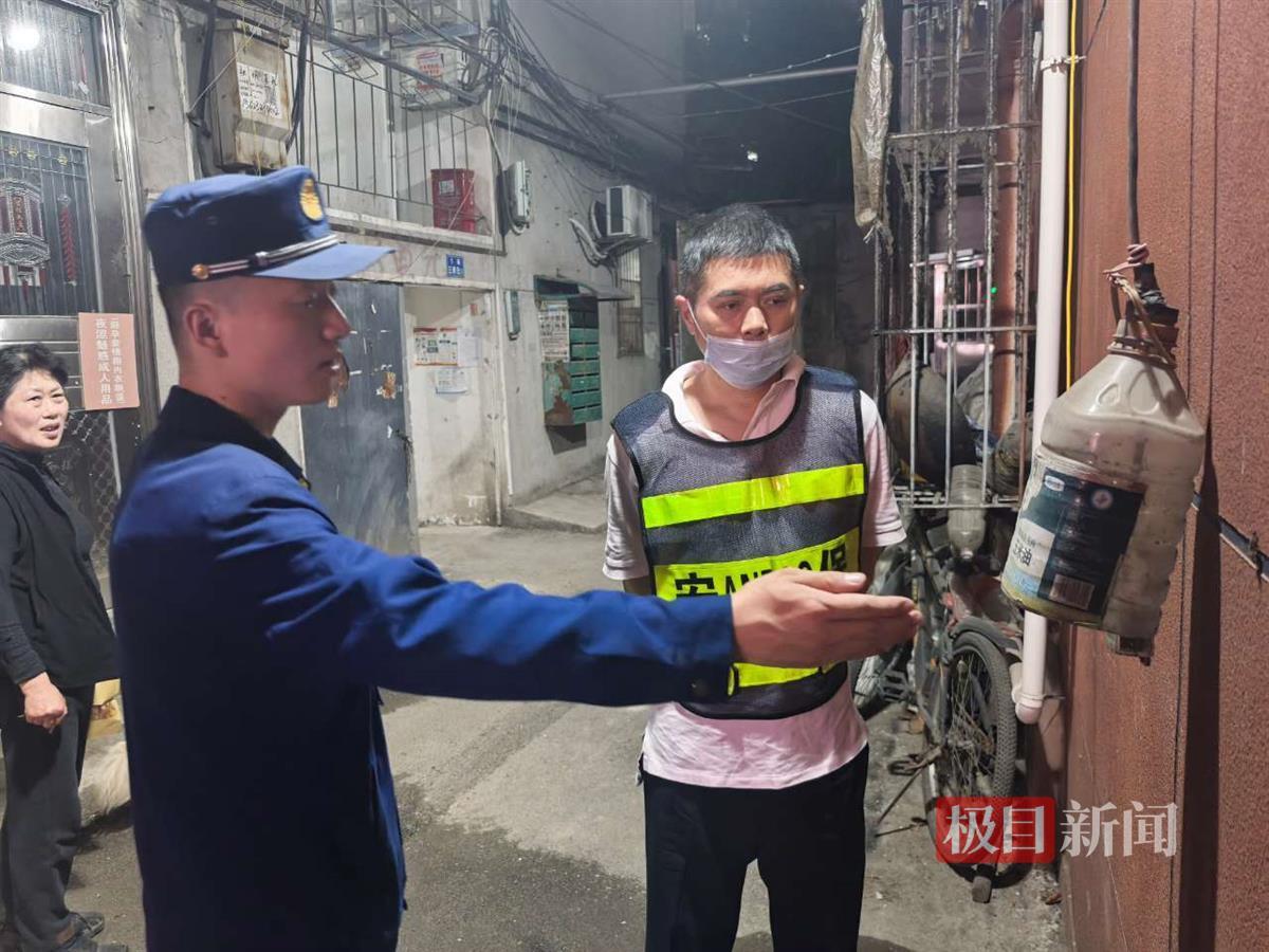 在武昌区,巡防组在老旧公房开展夜巡行动过程中,发现一处居民楼下存在飞线充电的行为,当即制止,并对居民进行警示教育。同时要求社区安保及相关负责人,做好隐患排查工作,确保整改措施有效执行。