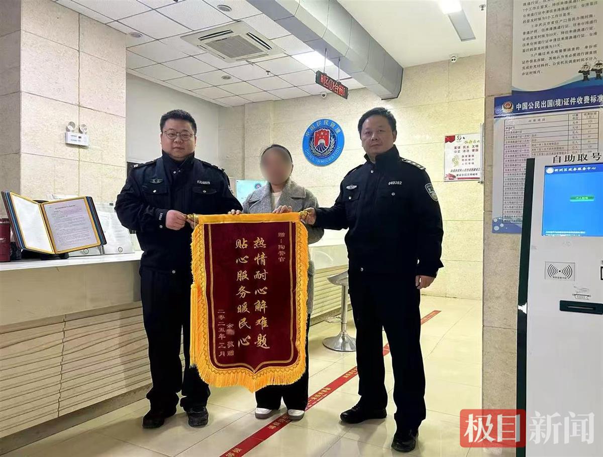 从新洲到武汉市局出入境支队,往返超过120公里。陶橙当天下午就带着材料驱车赶路,路上还不忘联系上级部门说明情况。材料递交后,他又化身“进度播报员”,每天主动联系余女士告知进展:“材料已审核”“正在制证”“明天就能取”。3月14日中午,余女士顺利拿到了通行证。3月24日,处理完事务返回家中的余女士专程送来锦旗,向陶橙表达感谢。