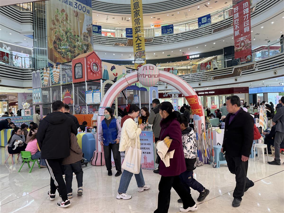 当天,新闻记者走访武汉经开区的永旺梦乐城经开购物中心、武汉经开万达广场等商圈,看到商场内人头攒动,一片热闹的景象。