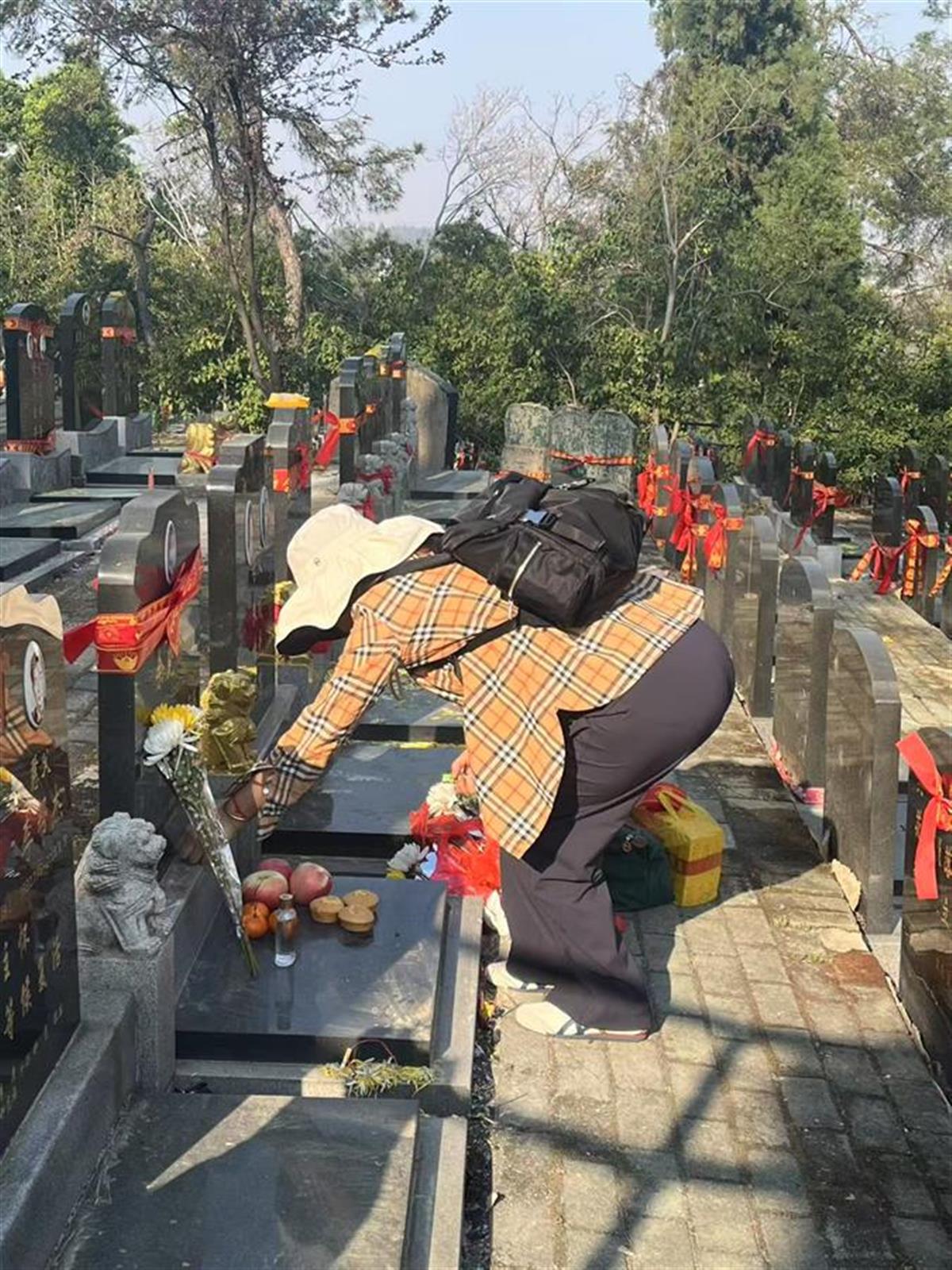随后,余艳红缓缓蹲下,轻轻擦拭着父亲的墓碑,将带来的菊花摆放整齐,从书包里拿出苹果、面包、橘子、白酒等物品,小心地摆放着,嘴中还喃喃自语:“爸,我现在跟姐姐都过得挺好,我还升职了,要是您还在,肯定会为我骄傲的。这些您爱吃的东西,还有这酒,您都尝尝……”