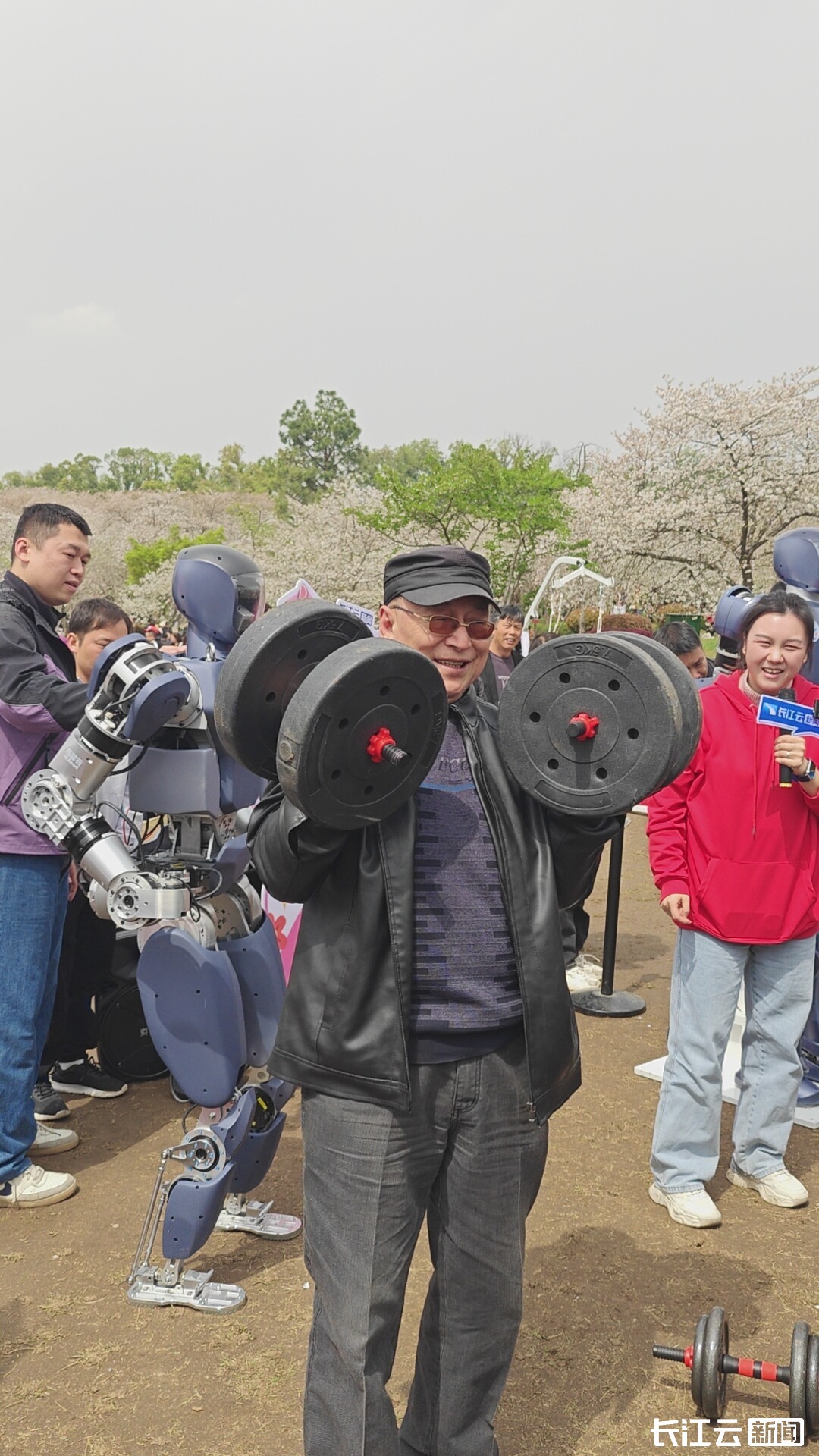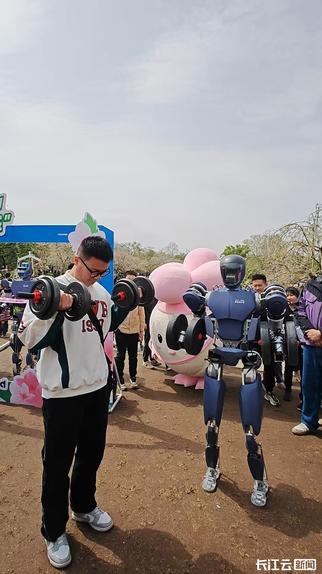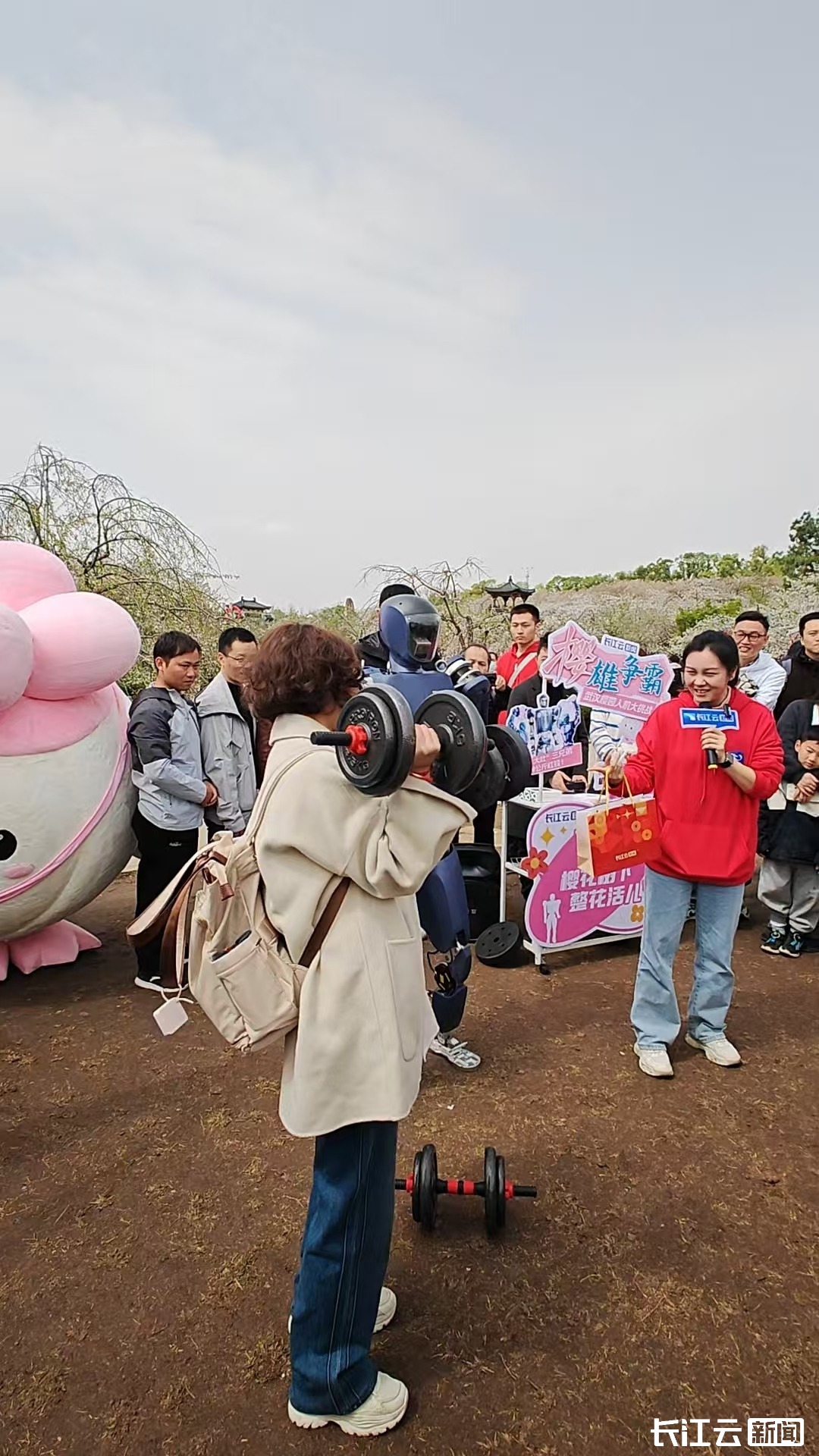 人形机器人走路跳舞,想必大家都看过,但是人类PK机器人举重您看过吗?今天(3月30日)上午,在武汉东湖樱园,一场由长江云新闻举办的“‘樱雄争霸’人机大挑战”在缤纷的樱花树下展开激烈角逐,吸引了不少游客前来围观打卡。这场游客pk机器人的挑战,究竟谁能胜出?