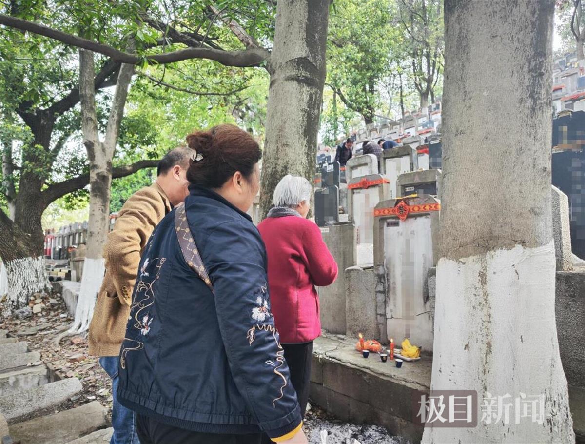 “爹爹妈妈,三姑娘带着全家来看你们了。”杨银安弯腰擦拭着青灰色的墓碑,指尖抚过“杨述先、肖澜香”的刻字时微微发颤。她将菊花轻轻放在父母合葬墓前,又从袋子里取出两盏印着“福”字的瓷杯:“这是爹爹最爱的汉阳高粱酒,还有妈妈喜欢的青团,我都带来了。”