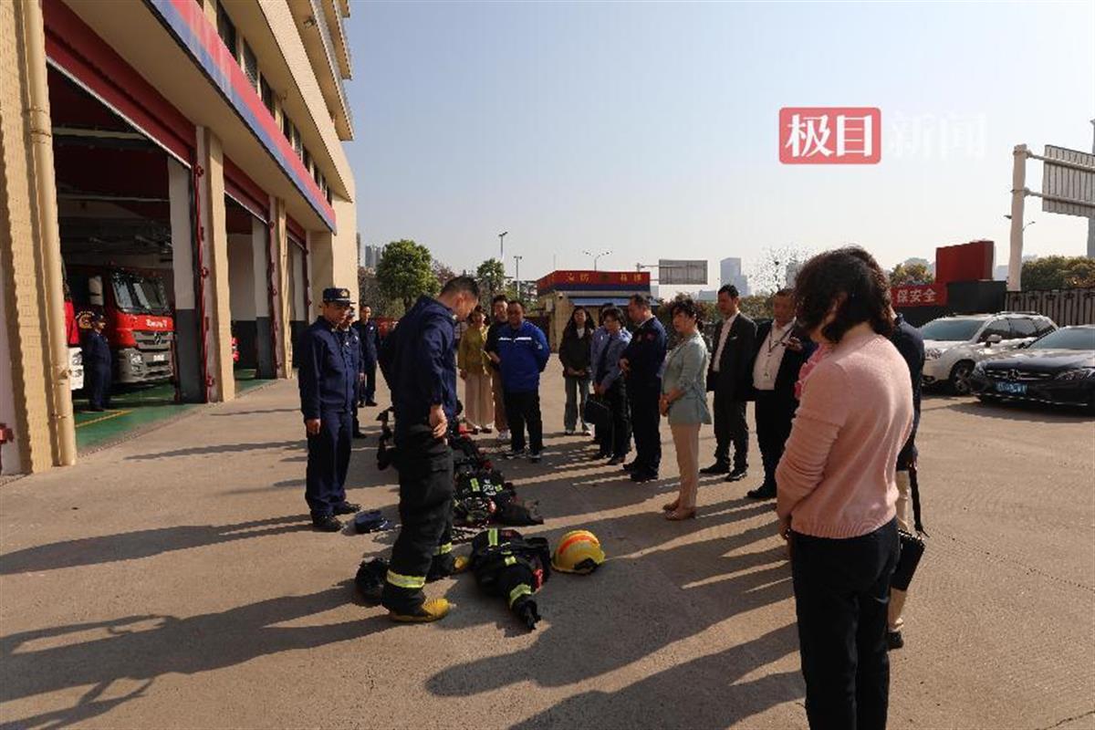 活动伊始,江汉区消防救援站的工作人员向与会人员详细介绍了消防车的类型、性能以及各类消防设备的配备情况。