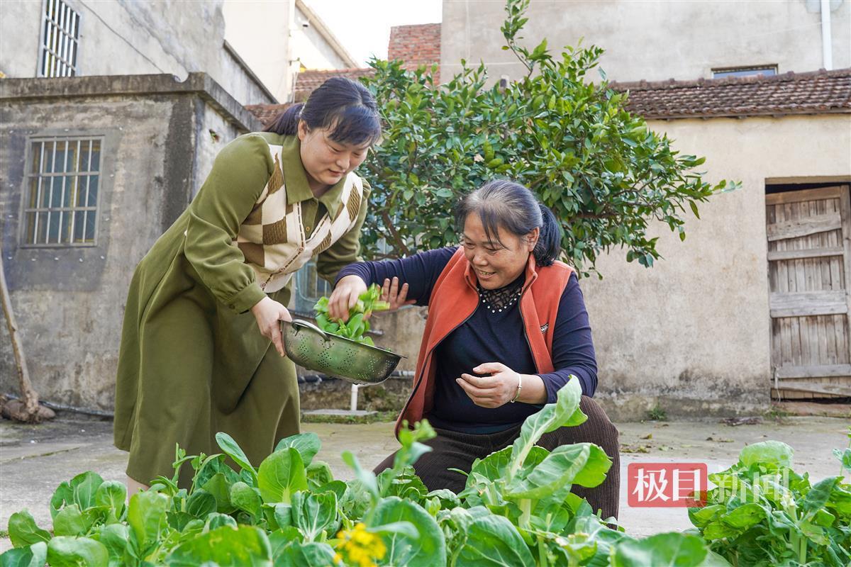 3月30日,记者来到夏明月在新洲区辛冲街顾畈村的家中,她正在和婆婆在菜园里摘菜,鲜嫩的时蔬在篮子里堆成小山,其乐融融的场面让大家羡慕不已。