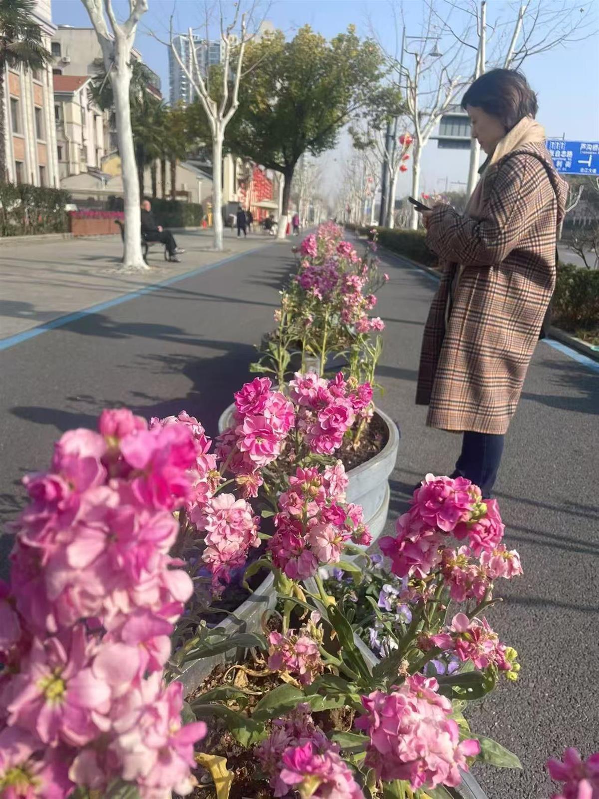 2月份沿江大道紫罗兰花开喜庆(新闻记者陈希摄)