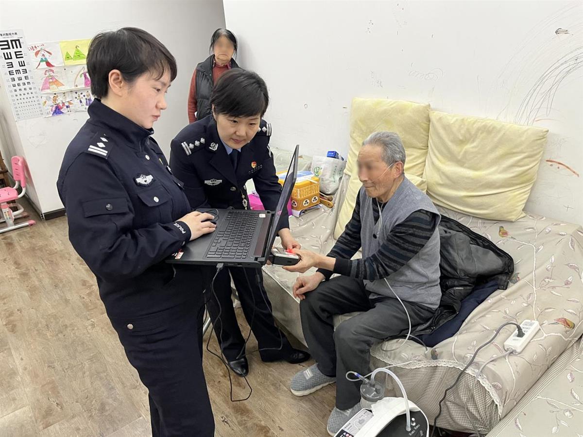 上午10时,三位队员乘坐地铁来到江岸区汉口花园小区。面对只能依靠呼吸机维持生命的老人,他们俯身在沙发前调整角度,轻声安抚着因呼吸困难而颤抖的老人。“程爹爹,您别起身,我们调整设备角度就行!”经过努力,队员们成功为程爹爹采集了人像及指纹信息。老人面戴氧气管无法起身,但眼神中满是感激,微微点头表示感谢。