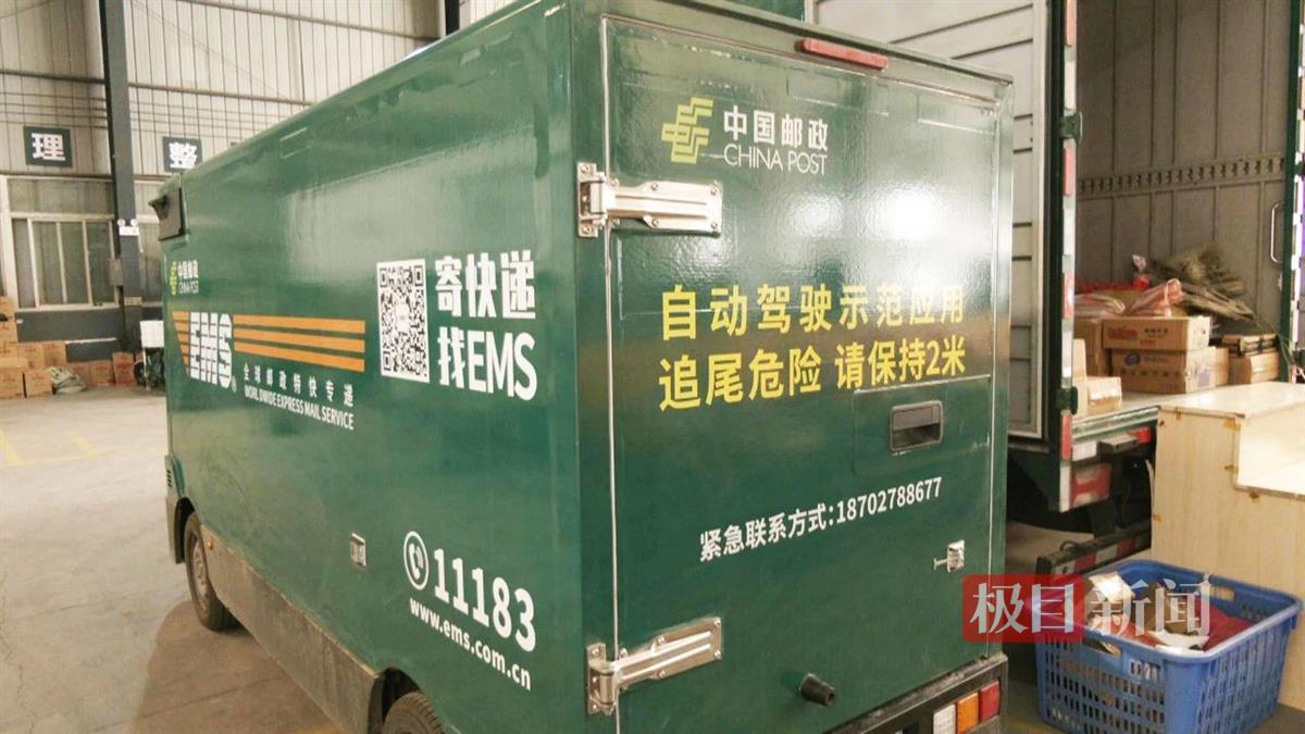 据黄陂邮政双凤揽投部负责人余仲超介绍,这是邮政引进的最新的无人驾驶运输车,通过预设路线实现点对点运输,较人工配送效率快速提升,有效解决了农村地区投递路线长、邮件滞留等问题。