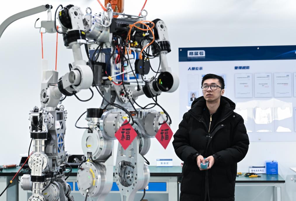 湖北武汉格蓝若智能技术股份有限公司员工在调试人形机器人。新华社记者杜子璇 摄