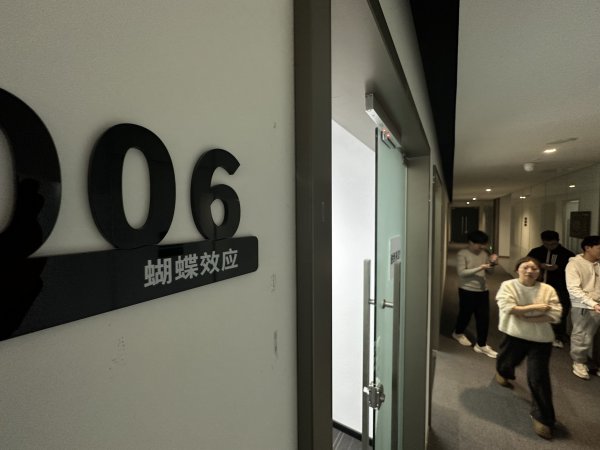 3月6日晚9时,研发Manus的蝴蝶效应武汉公司大门前,不少来访者咨询合作事宜。 陈卓 摄
