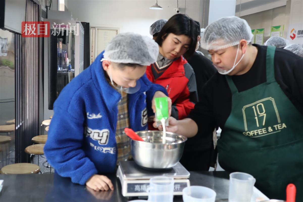 小杰的工作地点——1017公益咖啡厅,是胡弘在2023年为帮助心智障碍青年实现辅助性就业所创设的。“正如1017谐音‘邀您一起’所蕴含的意义,这里成为孩子们提升技能、体验自立快乐的温馨家园,也是社会各界接触了解‘心青年’的窗口。” 胡弘告诉记者,对于心智障碍者,要实现就业,首先得学会与他人相处,控制自我情绪。为此,在1017咖啡厅的岗前培训课程设置了从饮品、烘焙、快餐、礼仪、销售到清洁等多个社交场景,通过实景式学习,让心智障碍青年掌握冲泡咖啡、烘焙糕点等技能,帮助他们收获自我价值感,在社会中找到属于自己的位置。