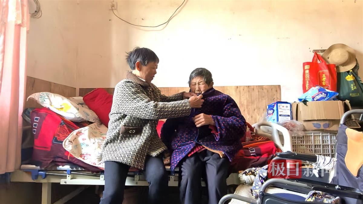 自从12年前,她因意外摔倒瘫痪在床后,她便依赖着儿媳朱美英给予的安全感。特别是3年前,她又双目失明,一直悉心照顾她的朱美英身上的味道和熟悉的声音,成了最安全的保证。
