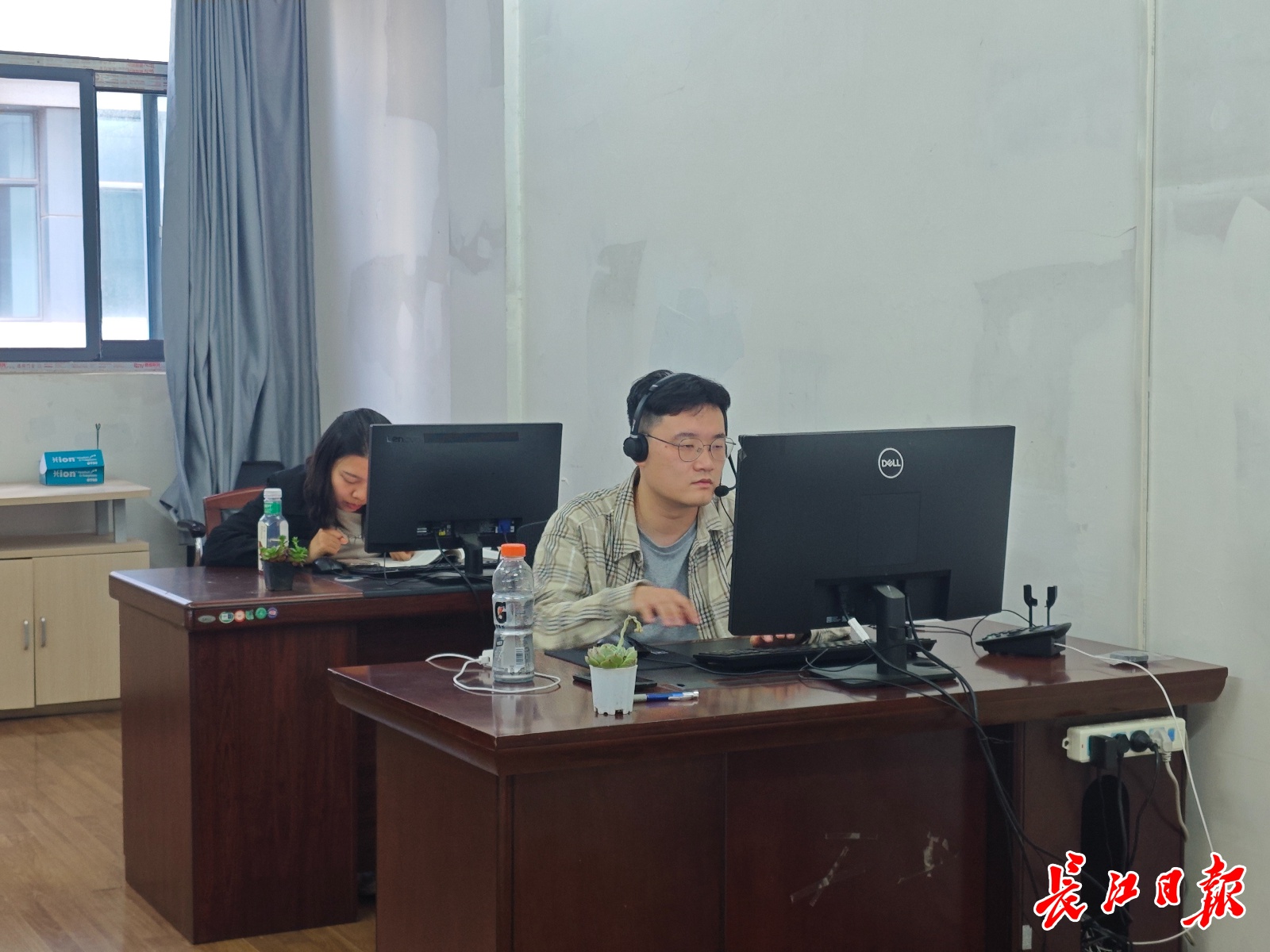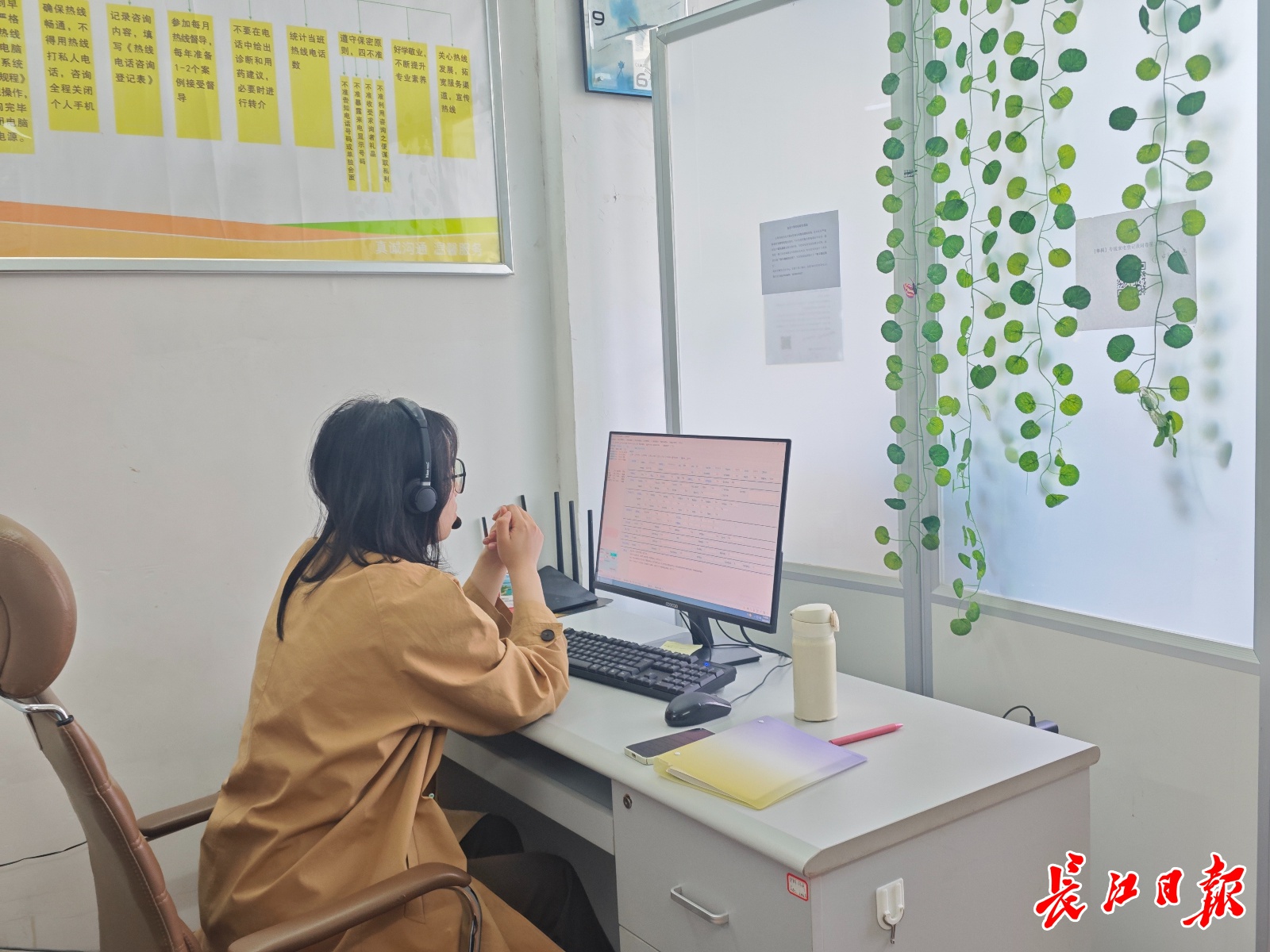 接线室的志愿者正在接听电话。长江日报记者 李慧紫 摄