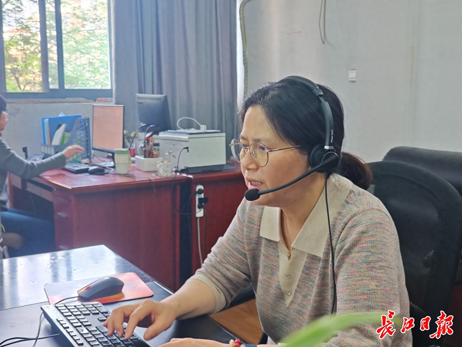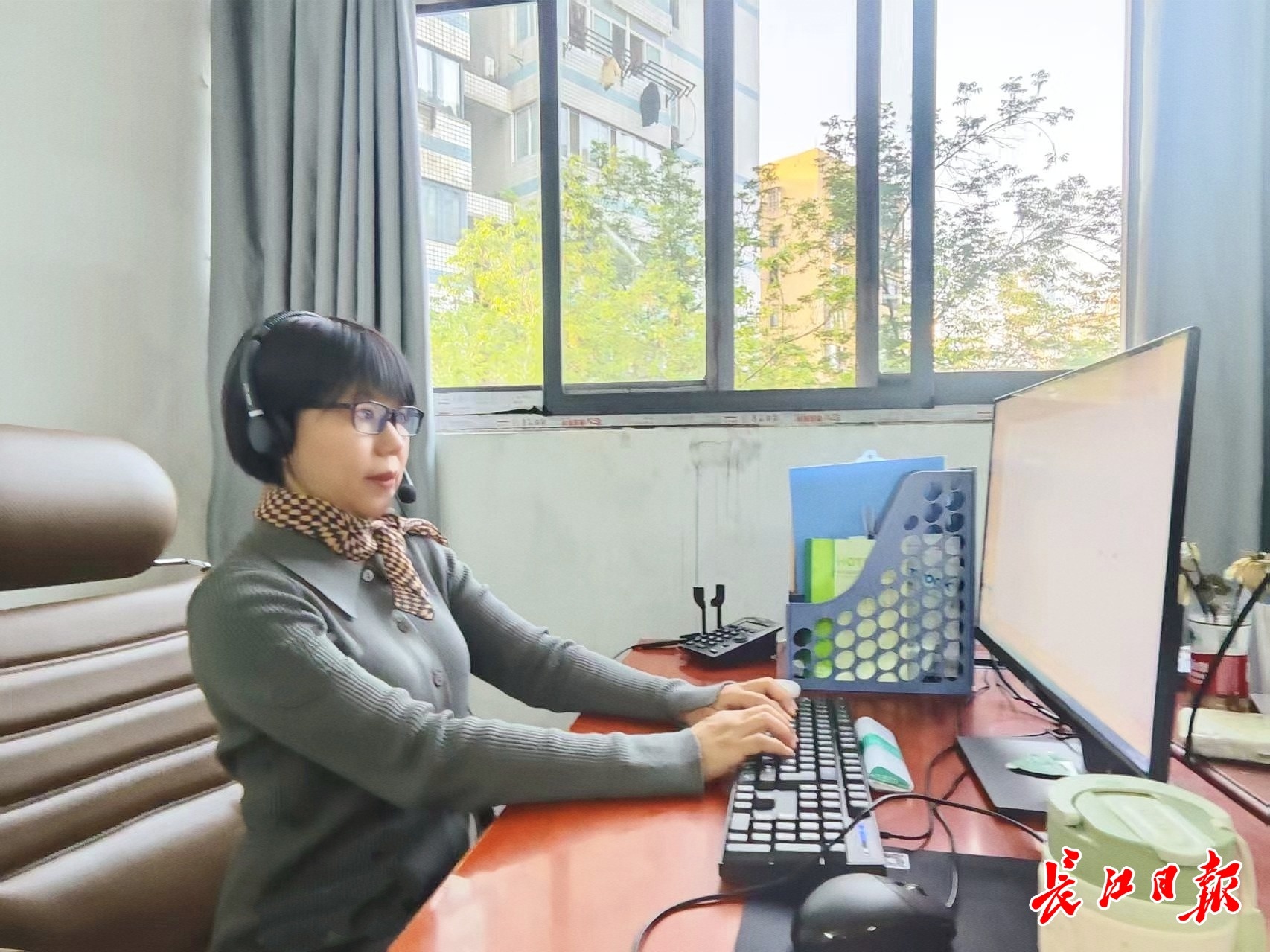 张家秀正在接听来电。长江日报记者 李慧紫 摄
