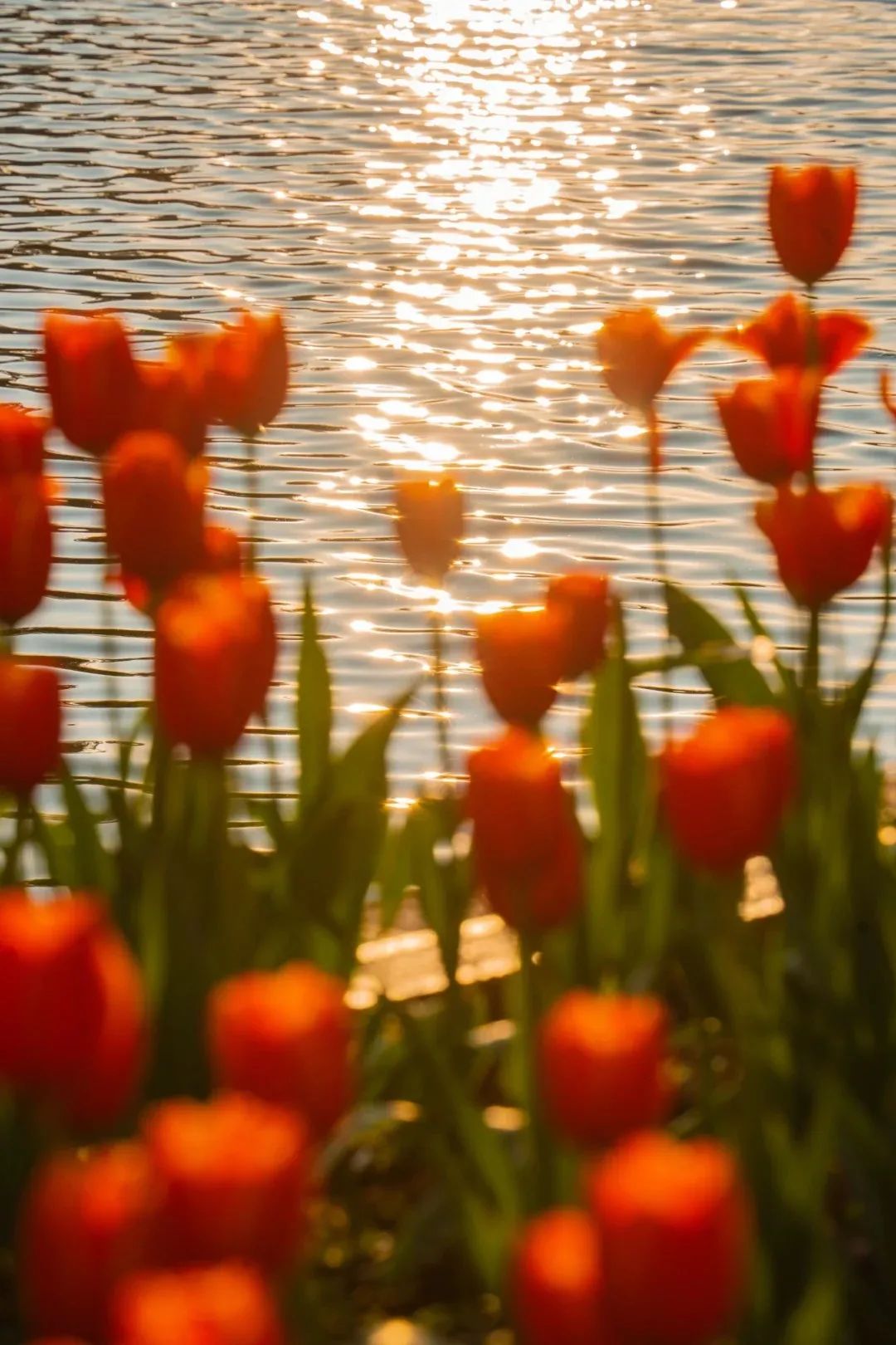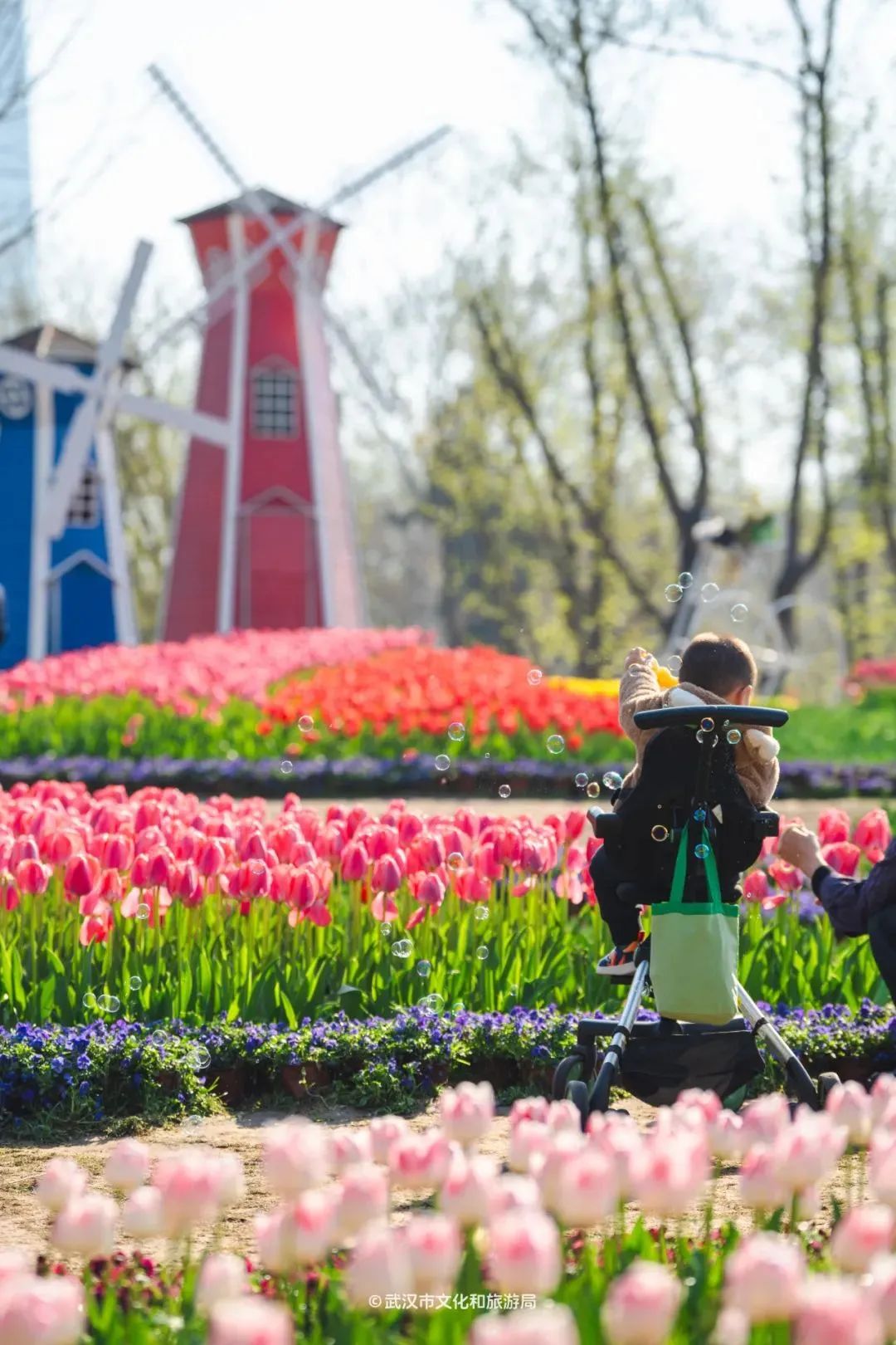 若说春日是调色盘,解放公园的郁金香定是最浓墨重彩的一笔。赤橙黄绿渐次铺展,像打翻了上帝的调色盘,搭配巨型荷兰风车、彩绘自行车,和公园里小桥流水的景观,巨出片。