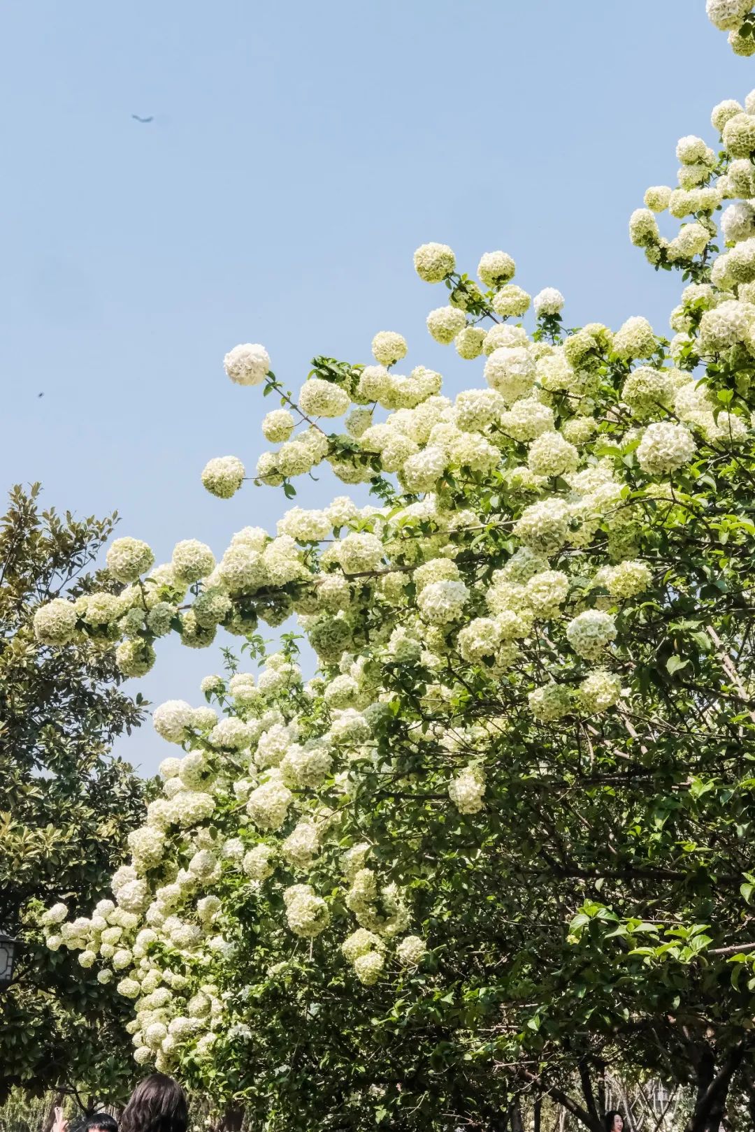 到了4月,看到树上挂满大朵大朵的白色云团,就知道属于木绣球的季节到了。