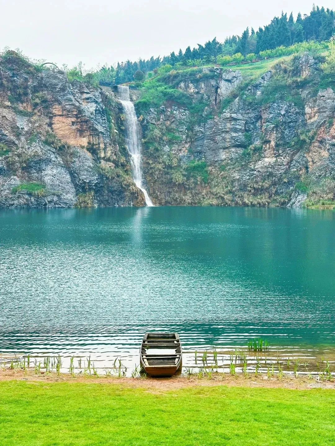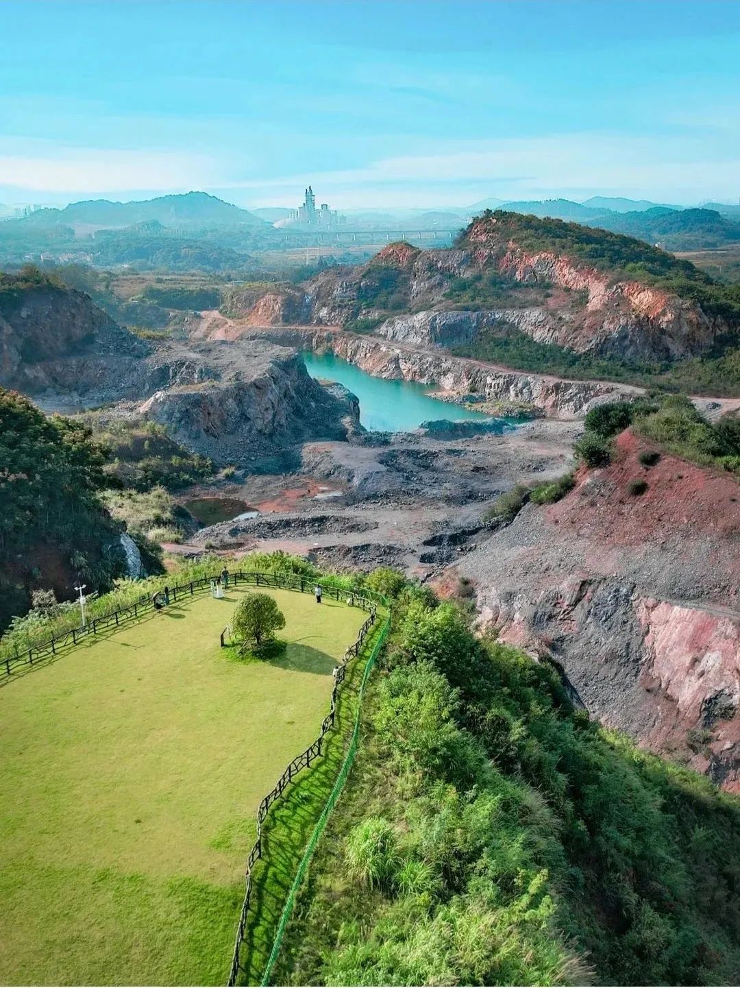 位于武汉江夏的灵山生态文化旅游景区是武汉首个矿山主题景区,山坡上有一望无际的草甸、矿石的天然花纹、矿坑中蓝如宝石的湖水、飞泻而下的瀑布流泉,在湖面激起层层波纹。