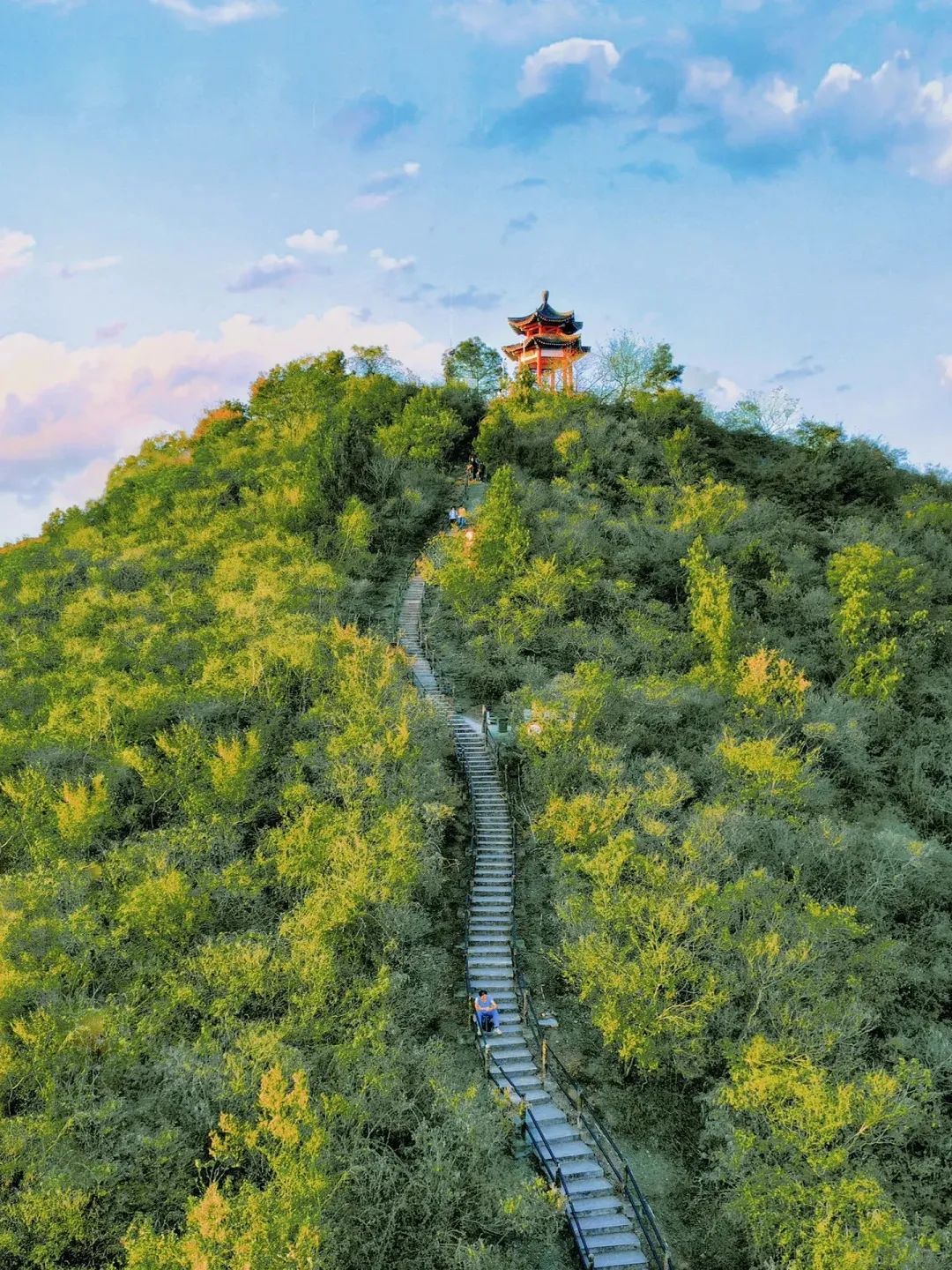 龙泉山开放攀登的是「天马峰」,海拔200多米,总共1000级台阶,春天去还能看到两侧的梧桐花与杜鹃。