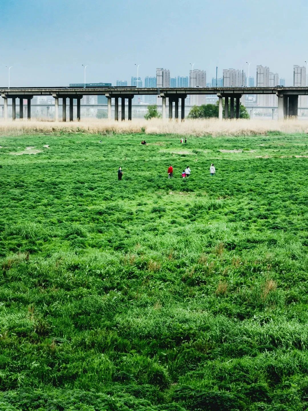 到了府河湿地,目之所及是无尽的绿。驾车一小时来这里露营野餐,看云、听风、回归松弛的自己。