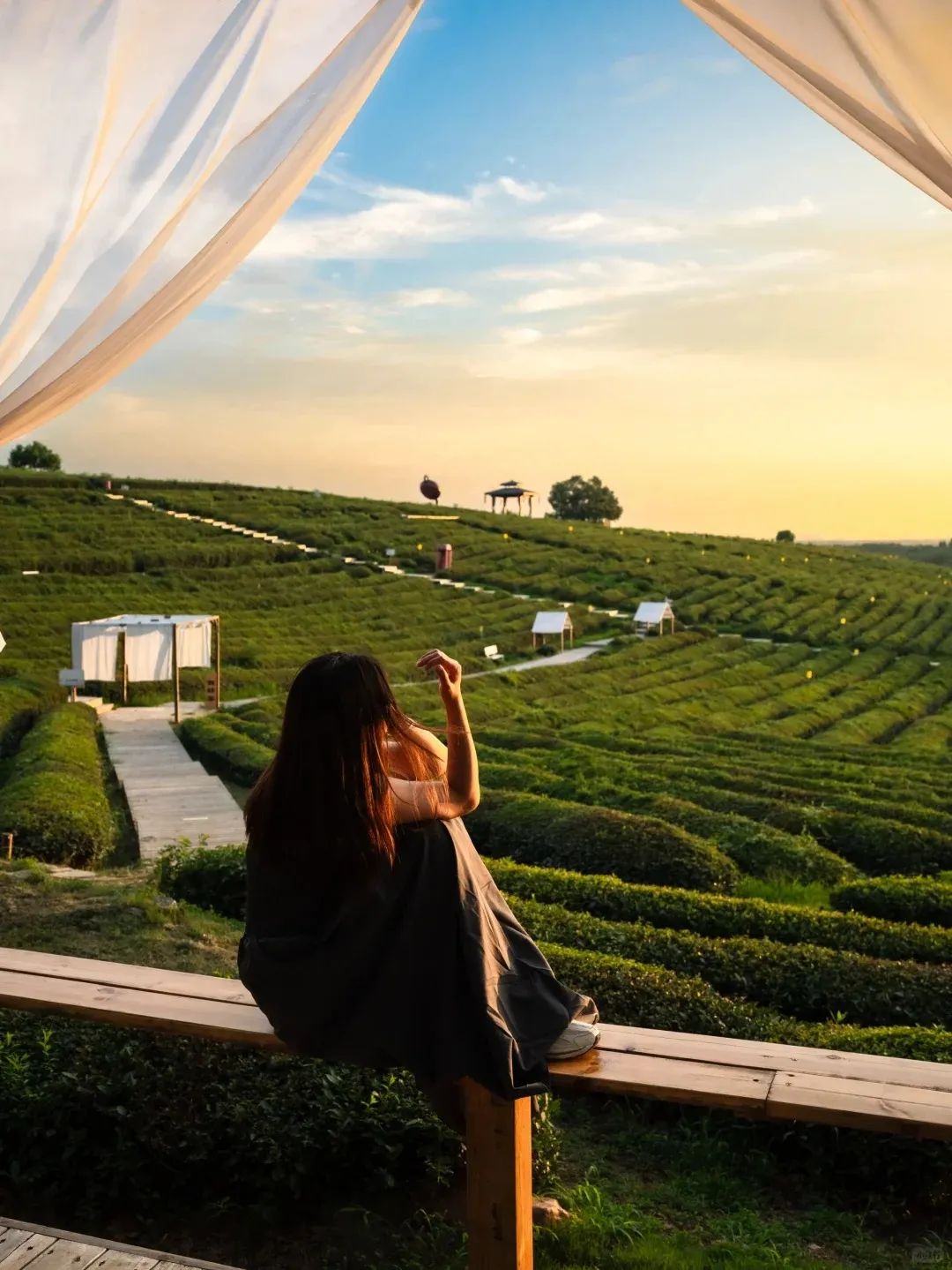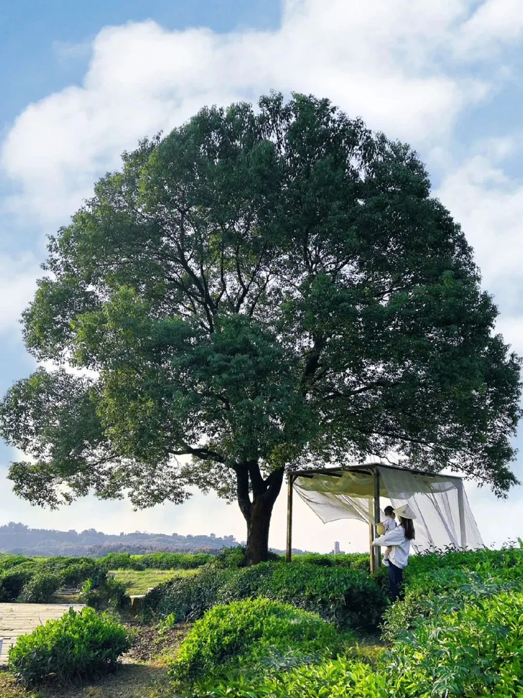 茶园在东西湖,占地600亩,层层起伏的茶树错落在山坡上,如同梯田。现在人不多,很适合踏青,带上野餐垫、露营椅在茶园品茗。
