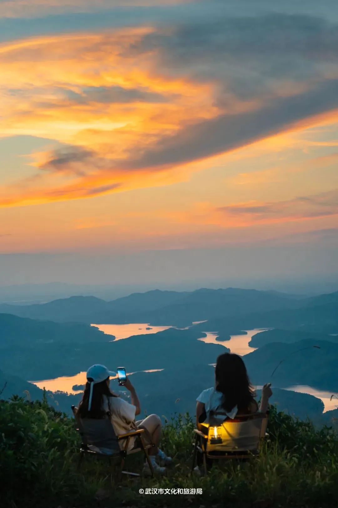 登顶还可以俯瞰梁子湖,群山绵延,山风轻柔,云层宽广地散开,此时天地间只剩下自己和自然交融的呼吸。
