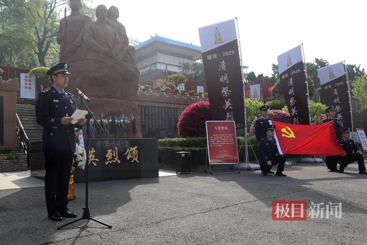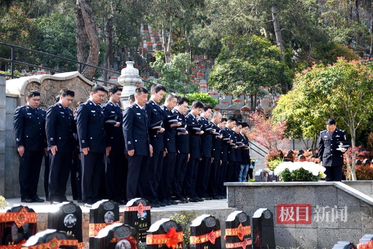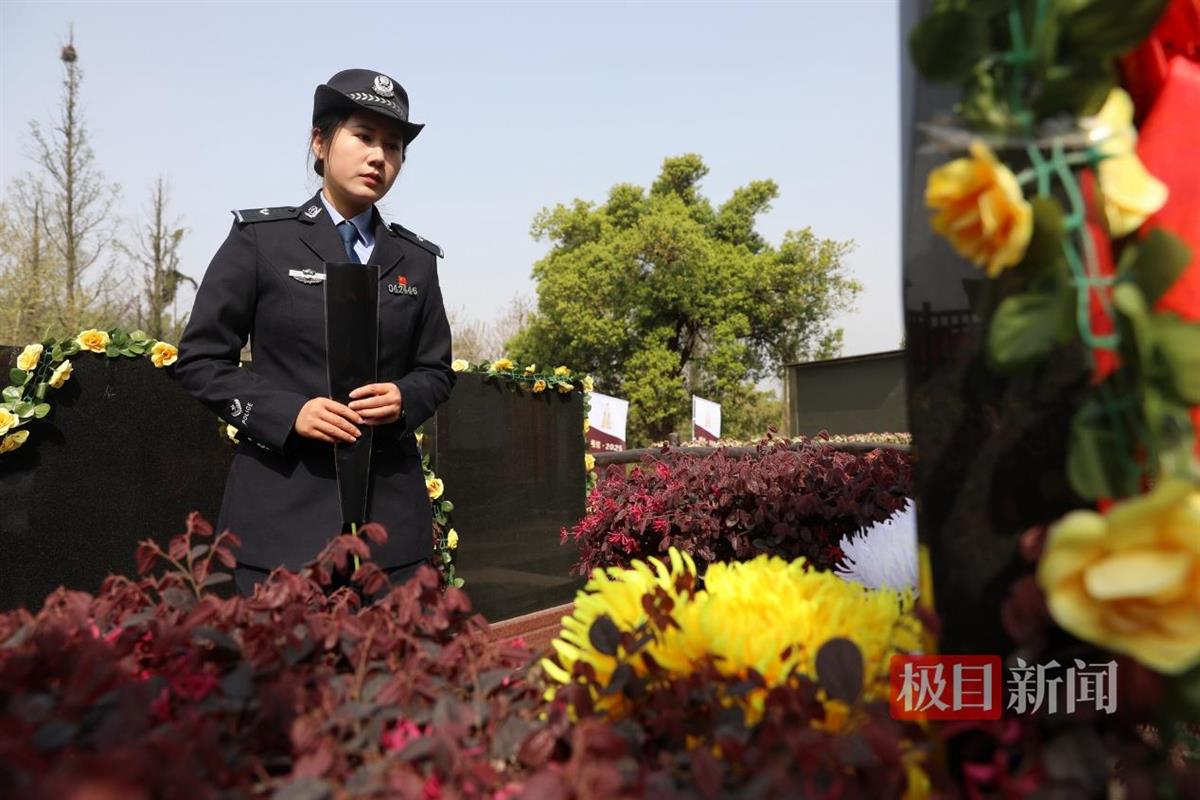 “噩传多日泪纷纷,秋桂寒飘空馥门。曾是铁肩担道义,时因琐务啸风尘。横眉除恶江城域,以所为家汉警魂。可恨帝宫招卫士,天堂仗剑莫空巡。”4月2日上午,江岸区分局民警胡诗尧在石门峰纪念公园朗诵起诗歌,与纪汉家属、二七派出所民警辅警一同纪念缅怀英雄所长纪汉同志。2024年9月15日凌晨,纪汉在值班时倒在工作岗位,经抢救无效牺牲,年仅52岁,被追授2024年“荆楚最美基层民警”、武汉市江岸区优秀共产党员等称号。