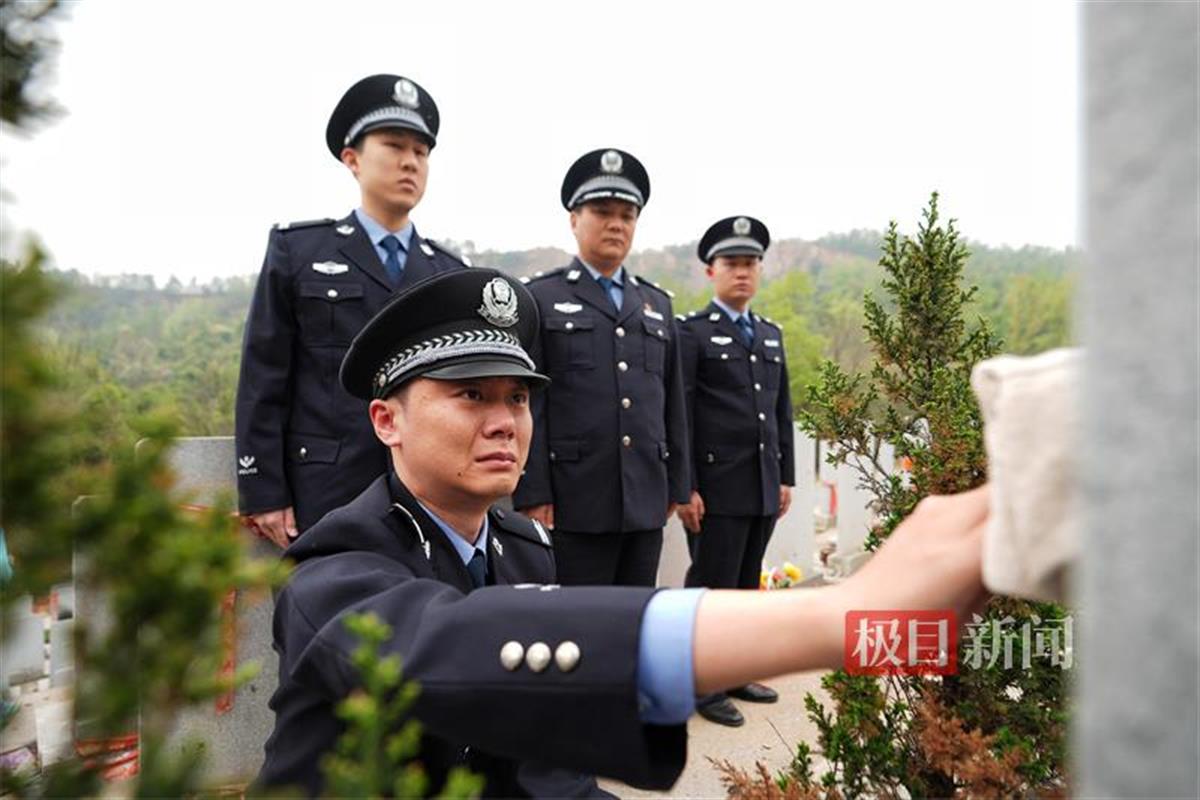 “爸,我来看您了!”身着警服的鄂靖在父亲鄂红兵墓前轻轻擦去墓碑上的灰尘,眼眶湿润。他的父亲是全国公安系统二级英雄模范、原武昌公安分局白沙洲派出所民警鄂红兵。