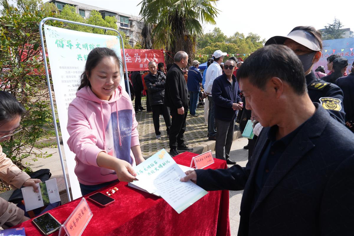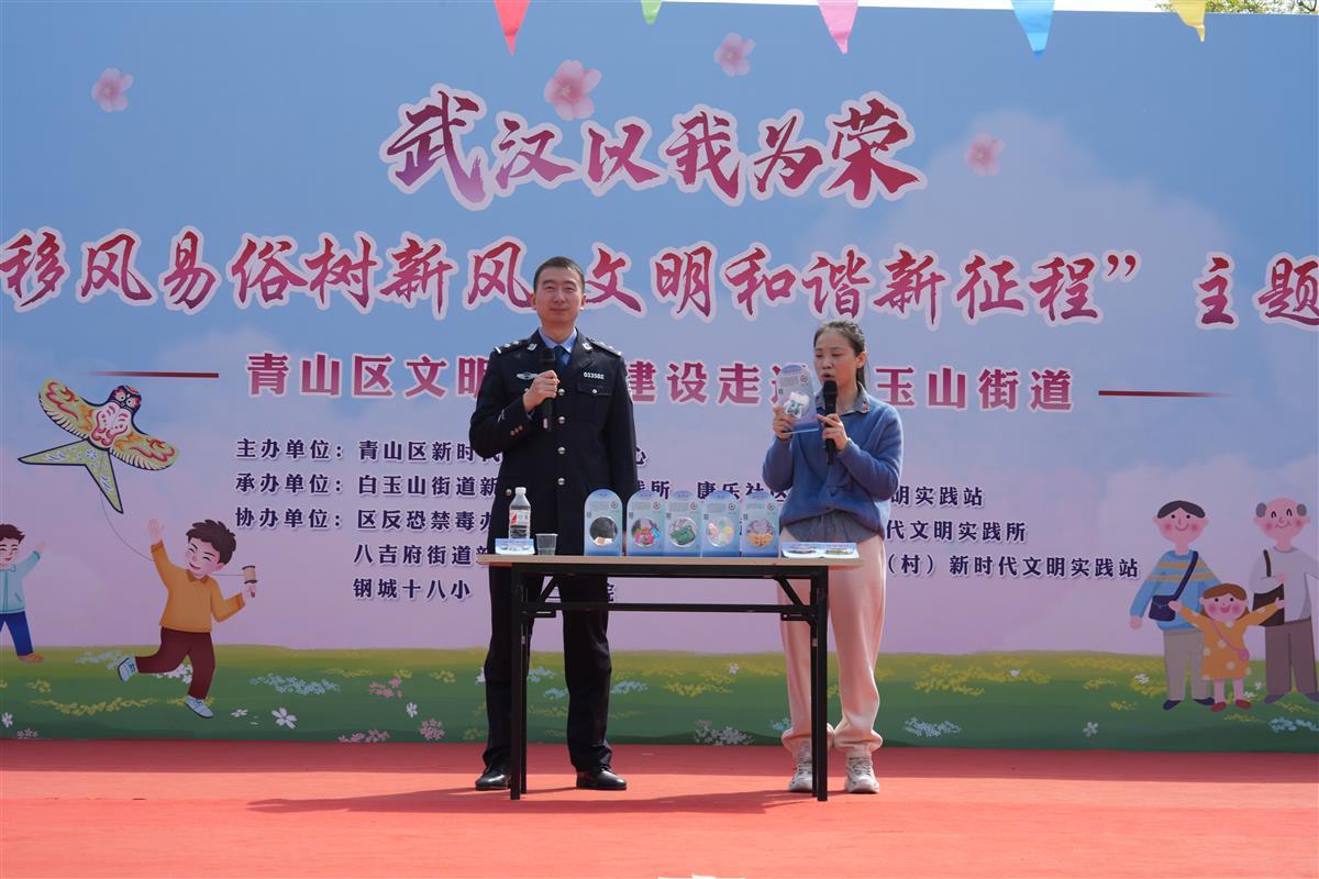 “提倡文明祭扫、守护青山绿水……”4月2日上午,由武汉市青山区新时代文明实践中心主办,白玉山街道新时代文明实践所、康乐社区新时代文明实践站承办的“移风易俗树新风 文明和谐新征程”主题宣传活动,在白玉山街心花园举行,活动联合区反恐禁毒办、区科协、区文化馆、武东街道新时代文明实践所、八吉府街道新时代文明实践所、白玉山街道各社区(村)新时代文明实践站、钢城十八小、武钢二医院等多家单位共同参与,以群众喜闻乐见的艺术形式传递着移风易俗、树立新风的重要理念。活动还结合当前正在开展的聚焦文明实践主题,结合群众实际需求,为大家带来知识宣讲、志愿服务等,吸引近300名村(居)民参与,现场气氛热烈。
