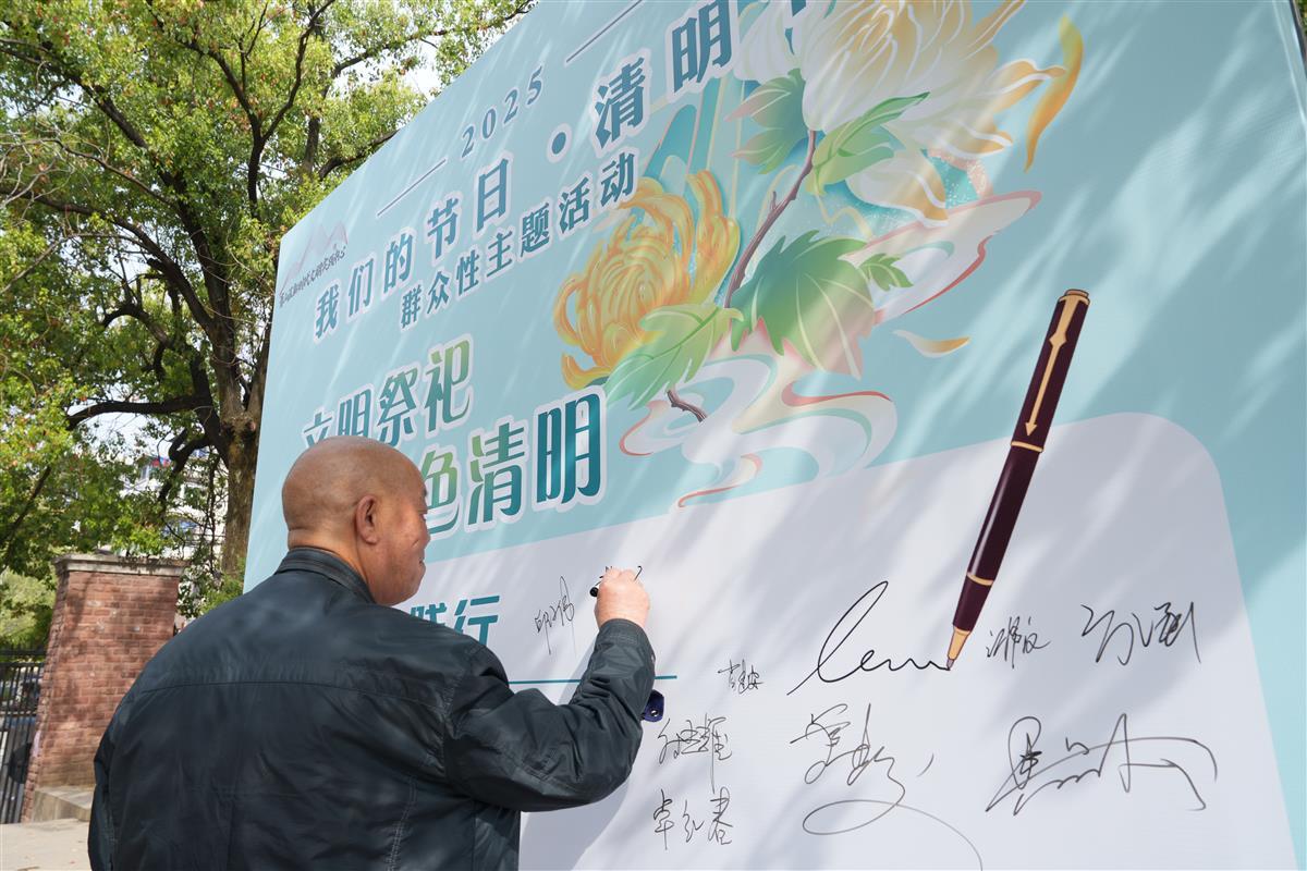 活动现场设置了移风易俗、文明殡葬宣传点,志愿者们向村民发放移风易俗倡议书,倡导文明新风尚,引导村民摒弃陈规陋习,树立文明、健康、科学的生活方式。现场还设立了“文明祭祀 绿色清明”承诺签名展板,通过签名形式,鼓励村(居)民树立绿色、环保、文明的祭祀理念,宣传引导大家发动身边人和家庭共同参与到文明祭祀的行动中来。