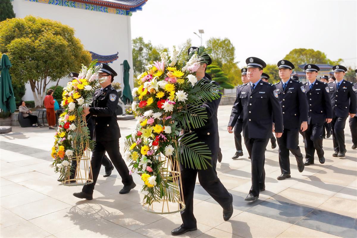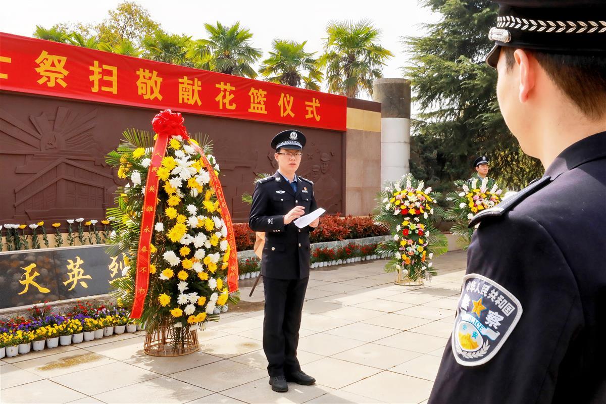 4月2日上午10时,玉笋山陵园楚天英烈纪念广场松柏环绕、庄严肃穆。20余名青年民警代表警容严整、列队而立,在巍峨的革命烈士纪念碑前脱帽默哀,向为守护人民平安献出生命的英烈致以最深切的悼念。两名礼警迈着整齐的步伐敬献花篮,全体民警面向警旗庄严宣誓:“坚决拥护中国共产党的绝对领导,矢志献身崇高的人民公安事业……”铿锵誓言在广场上空久久回荡。