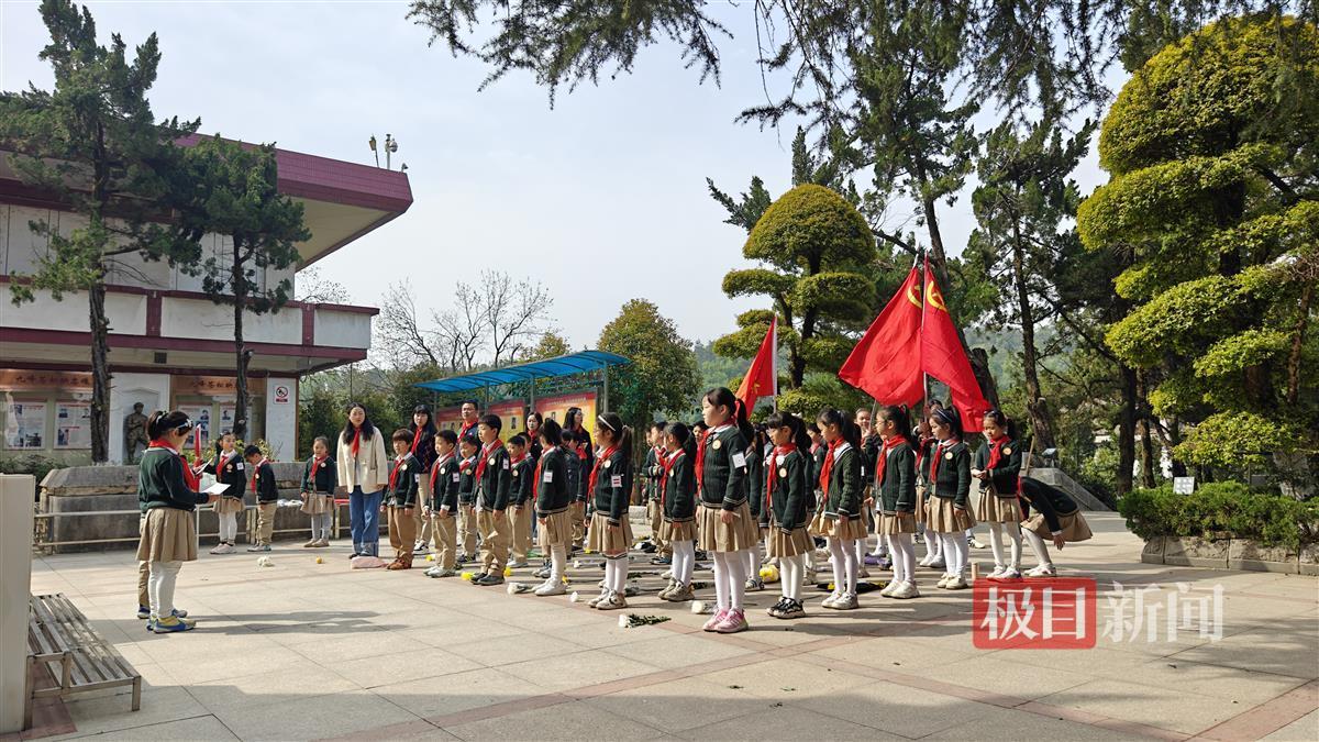 随后,党员与少先队员共同默哀致敬、敬献鲜花,鲜红的党旗与飘扬的队旗在春风中交织,映照着薪火相传的红色基因。