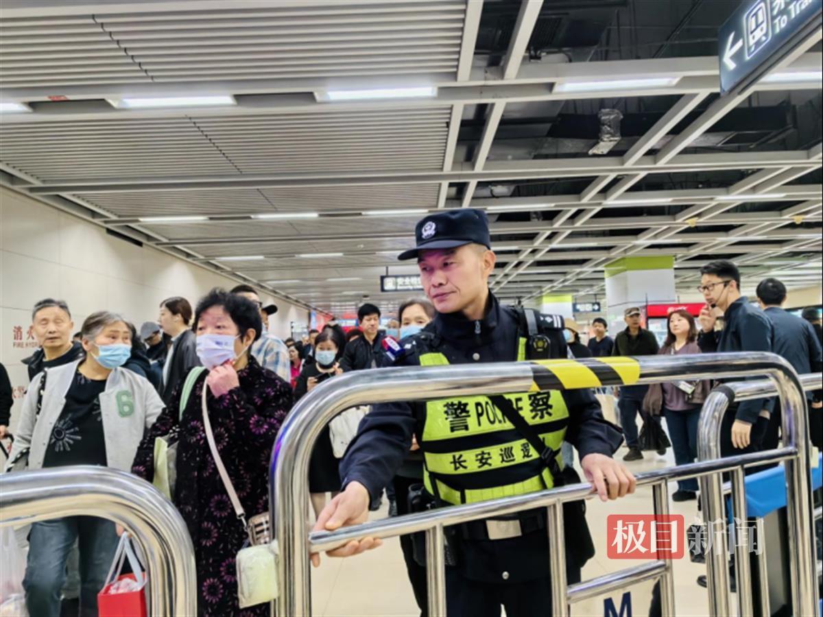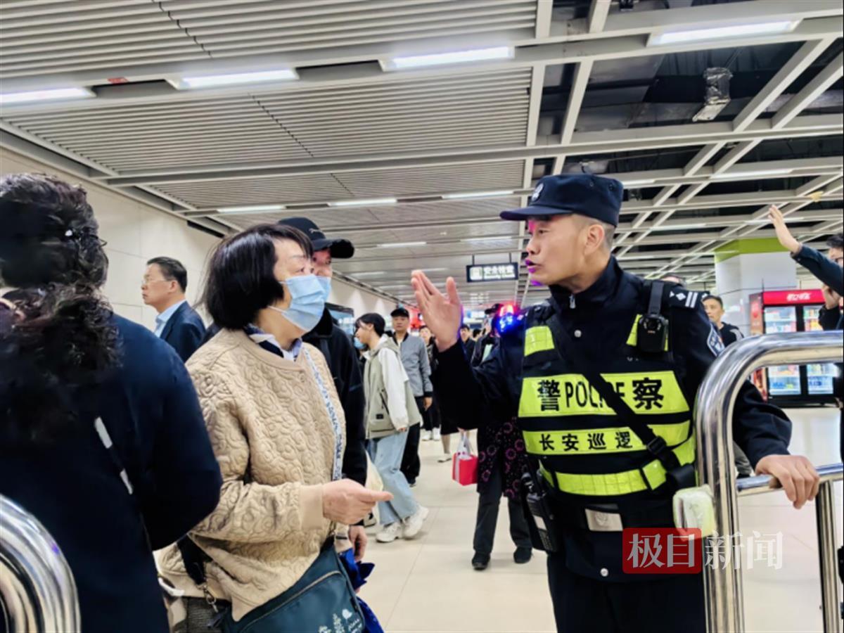 人多拥挤,有不少乘客在乘坐地铁途中遇到困难。长安巡逻队立足岗位,主动靠前提供服务,努力以实际行动解决群众出行中的急难愁盼。