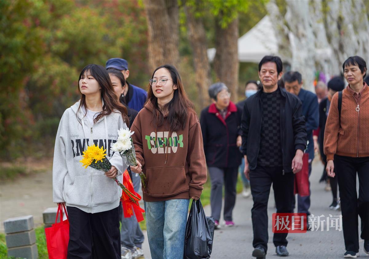 走进石门峰人文纪念园墓区,新闻记者看到,大多扫墓市民在墓碑前驻足,用水果和鲜花寄托哀思。墓区,淡雅的黄白菊花摆在一方方墓碑前,不时还会传来电子祭祀产品。