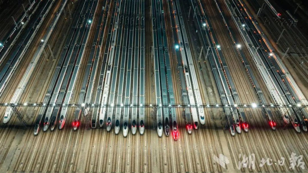 图为动车组在武汉动车段整装待发。通讯员 邹政 摄