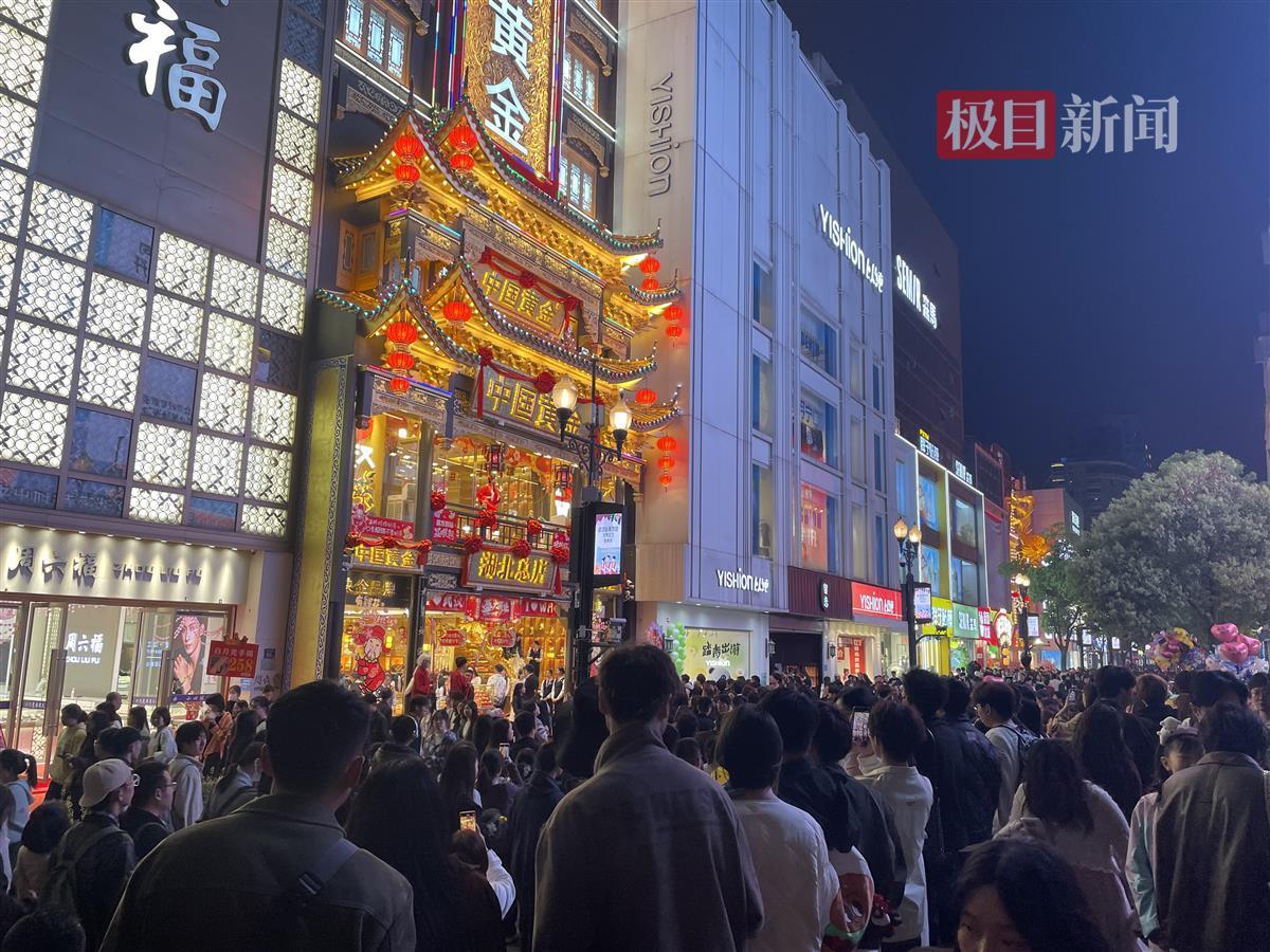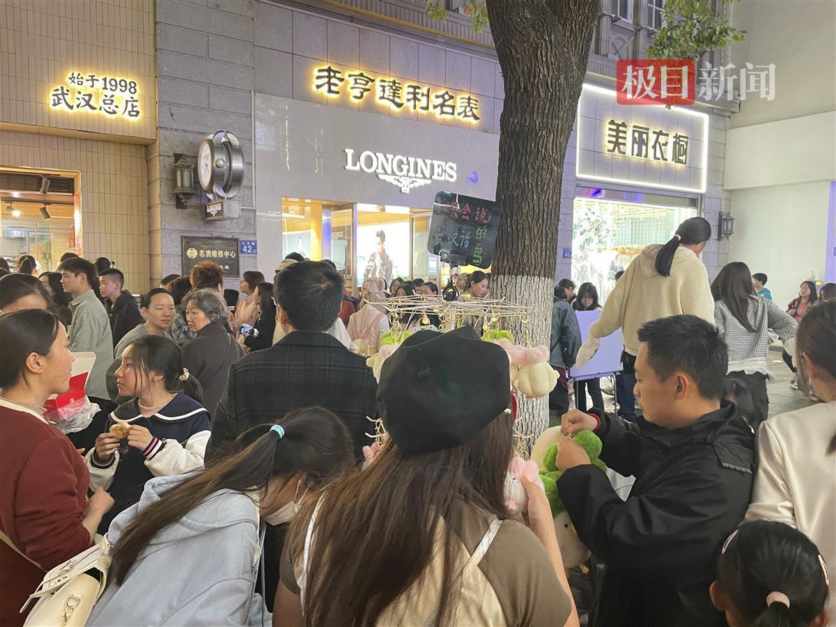 当天,新闻记者在武汉江汉路步行街看到,这里已经是人山人海,市民游客有序在这里漫步、品尝特色美食。