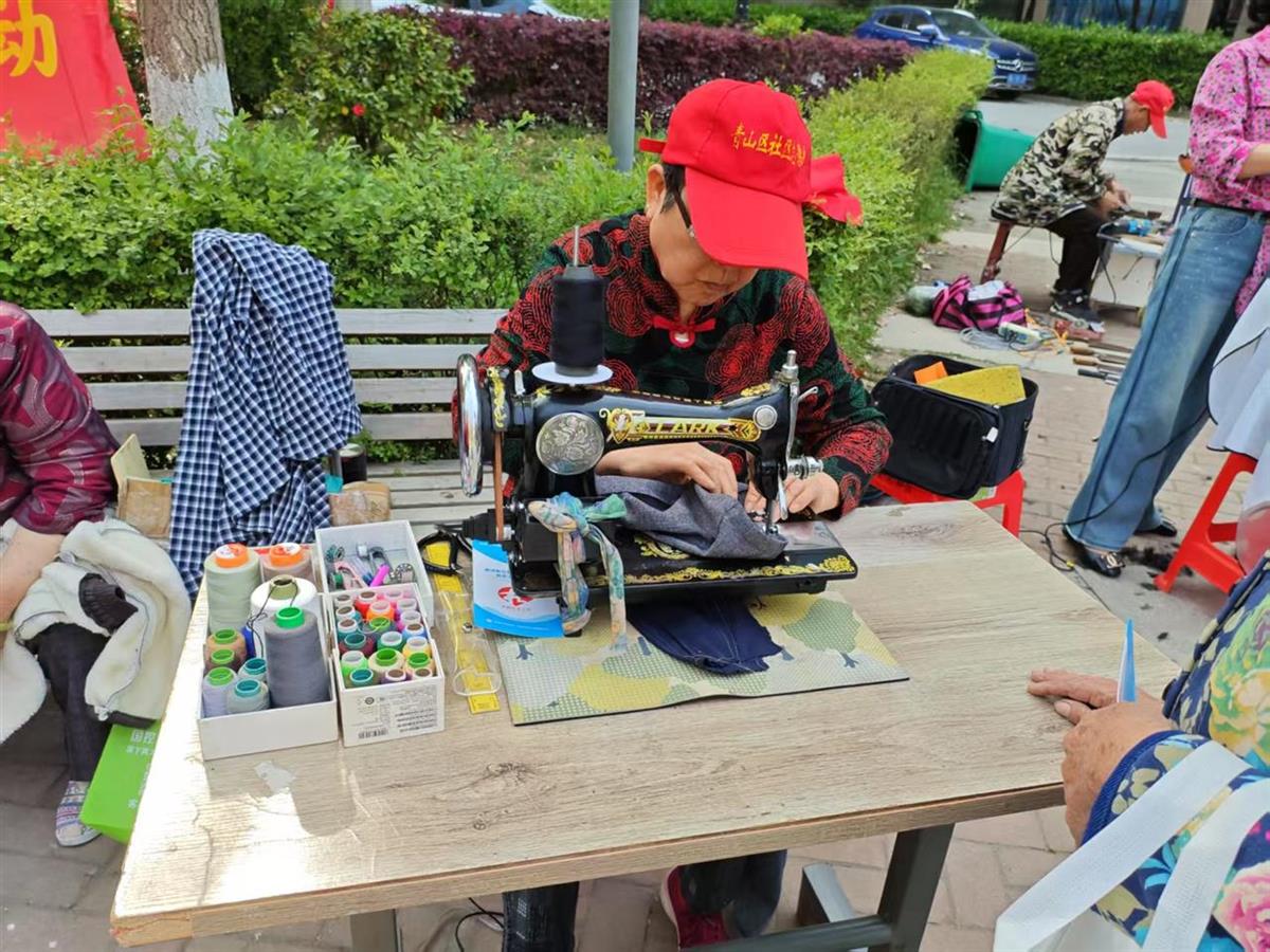 活动现场设置了多个便民服务专区,包括健康义诊、爱心义剪、刀具打磨、衣物缝补以及智能手机使用教学等。工作人员有序引导居民取号排队,确保活动高效开展。在义剪区,专业理发师根据每位老人的脸型特点和个人需求精心设计发型,娴熟的手艺让老人们焕然一新,精神抖擞,赢得了现场居民的连连称赞。