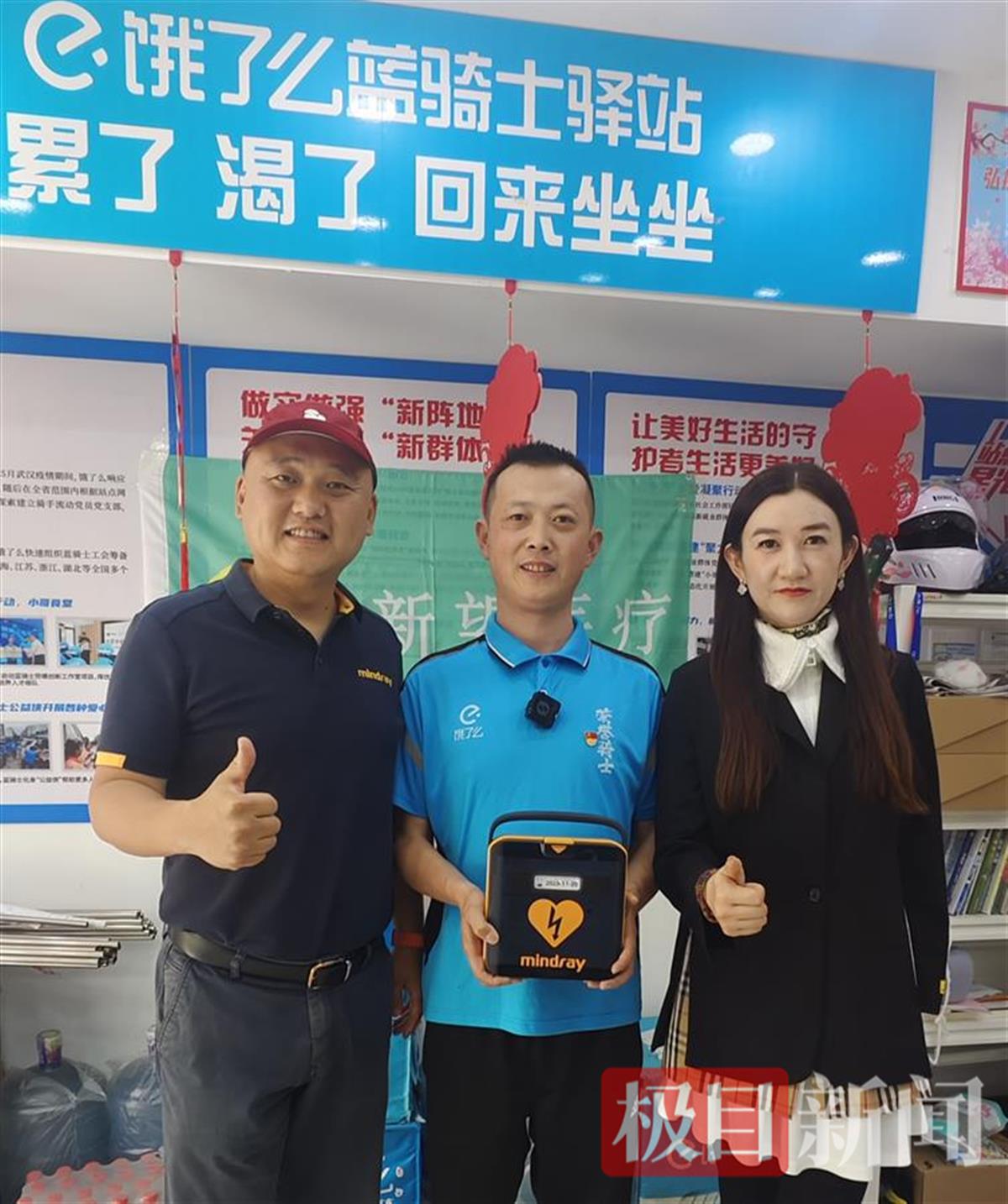 3月25日上午,武汉街头,一位七旬老人被撞倒地后,途经此地的外卖骑手张宝剑迅速停车,从电动车储物箱中取出便携式AED设备,跪地实施专业急救,为伤者争取到宝贵的救治时间。其英勇行为经媒体报道后迅速在网络上传播,赢得了社会各界的广泛赞誉,也引起了一些爱心企业的关注。