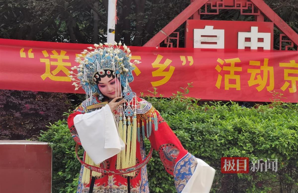当日17:30,演出现场人头攒动,热闹非凡。京剧《贵妃醉酒》《天女散花》《智斗》、二胡独奏《赛马》等节目轮番上演。演员们字正腔圆的唱腔、惟妙惟肖的身段与弓弦间流淌的激昂旋律交相辉映,既展现了传统戏曲的韵味,又融入了现代艺术的表达,生动展现了中华传统戏曲的独特魅力。72岁的戏迷王大爷激动地说:“多少年没在家门口看到这么地道的戏曲了,演员们唱得好、演得真,连小孙子都看得入了神!”