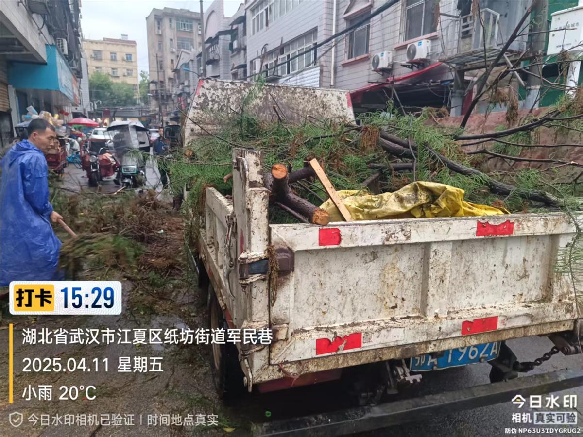 4月11日中午,武汉市江夏区纸坊街道突遭强降雨和大风天气袭击,面对突如其来的自然灾害,纸坊街道综合执法中心迅速启动应急预案,以高效、专业的行动确保了人民群众的生命财产安全。
