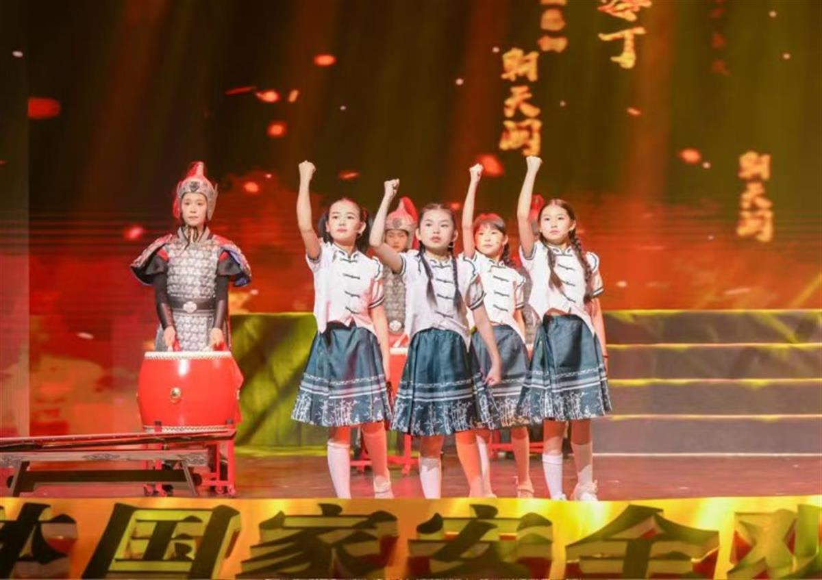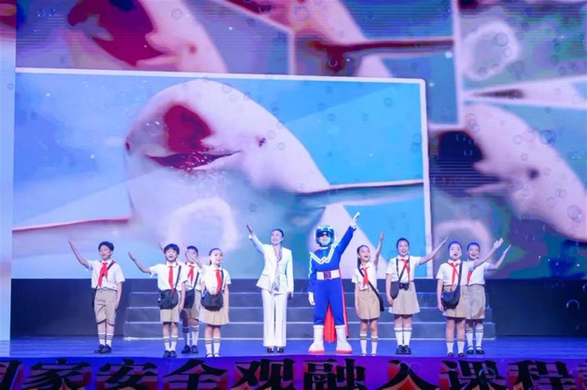 展演活动中,孩子们通过音诗画、情景剧、音乐剧等多种形式,生动诠释了总体国家安全观融入课程教学的方法、路径和创新实践。情景剧《探究融合之道》讲述语文教研室探究将国家安全教育融入课堂的故事,顺口溜趣说20个国家安全领域;音诗画《诗乐传风骨》以古琴曲《关山月》串联起战士戍边情景,让学生在诗词熏陶中厚植家国情怀;《让江豚插上科技的翅膀》中学生与“武小安”梦幻联动,展示科技护航生态安全的实践探索……
