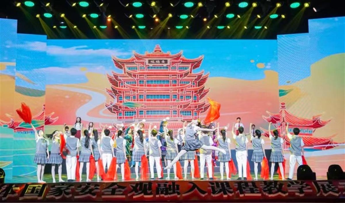 “五星红旗迎风飘扬,胜利歌声多么响亮。歌唱我们亲爱的祖国,从今走向繁荣富强!”4月11日下午,在第十个全民国家安全教育日来临之际,“总观引领、创新融合”——武汉市总体国家安全观融入课程教学展示活动在中南剧场举办。