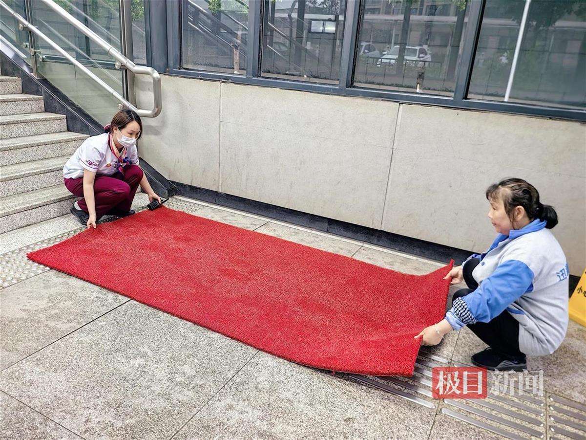 阳逻线阳逻站在出入口步梯处加铺防滑地毯